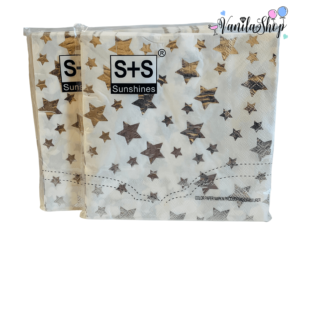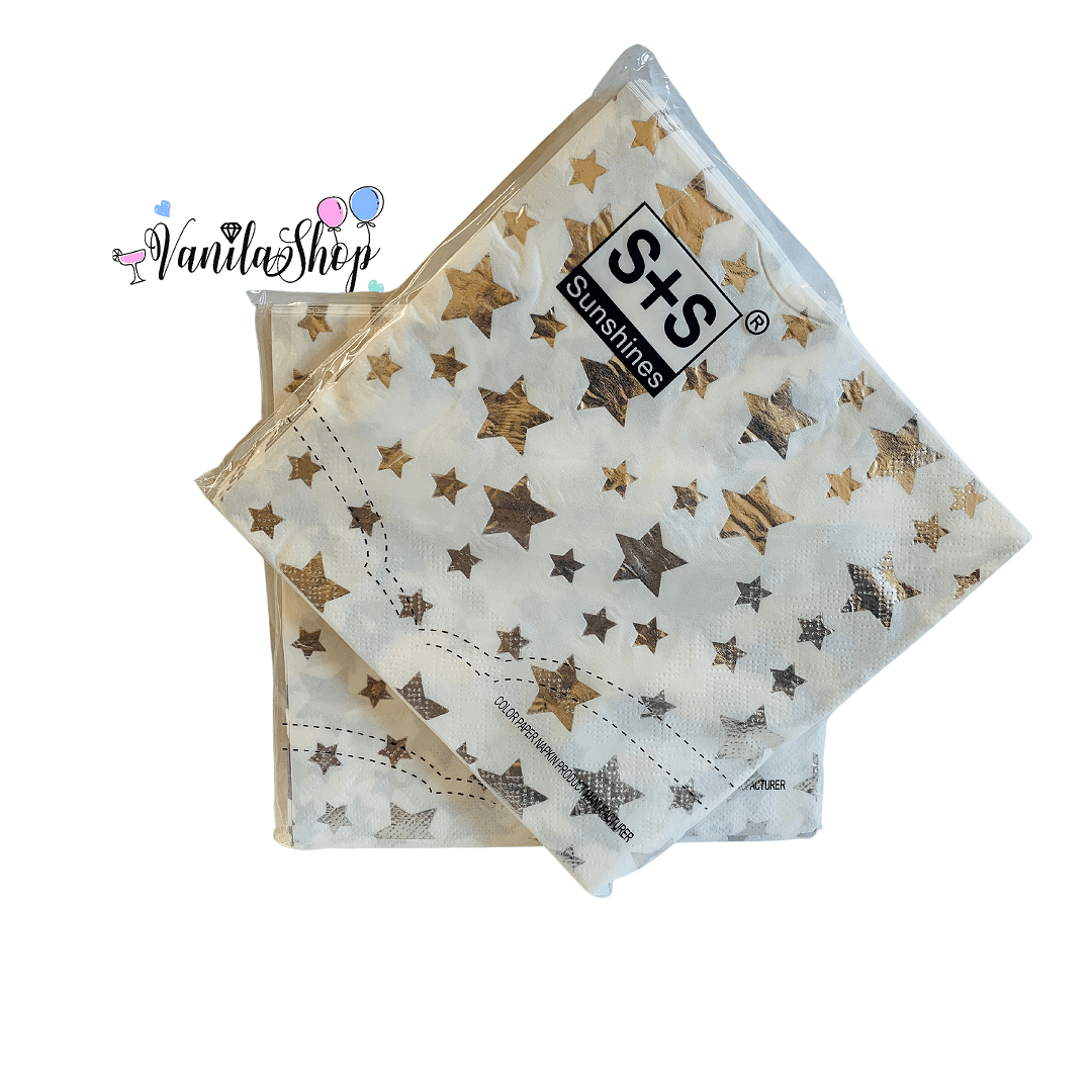Парти салфетки – Сребърни звезди – 20 броя