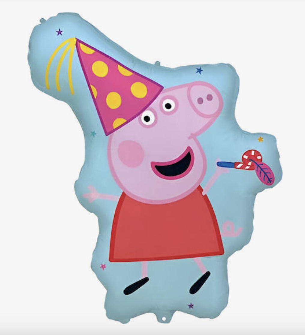 Направете празника още по-забавен с този голям фолиев балон Peppa Pig! Героят е облечен в червена рокличка, с парти шапка и свирка – готов за празненството. Балонът е подходящ за украса на детски рожден ден, тематично парти или за изненада на малките фенове на любимото прасенце. Може да се надува с въздух или хелий.