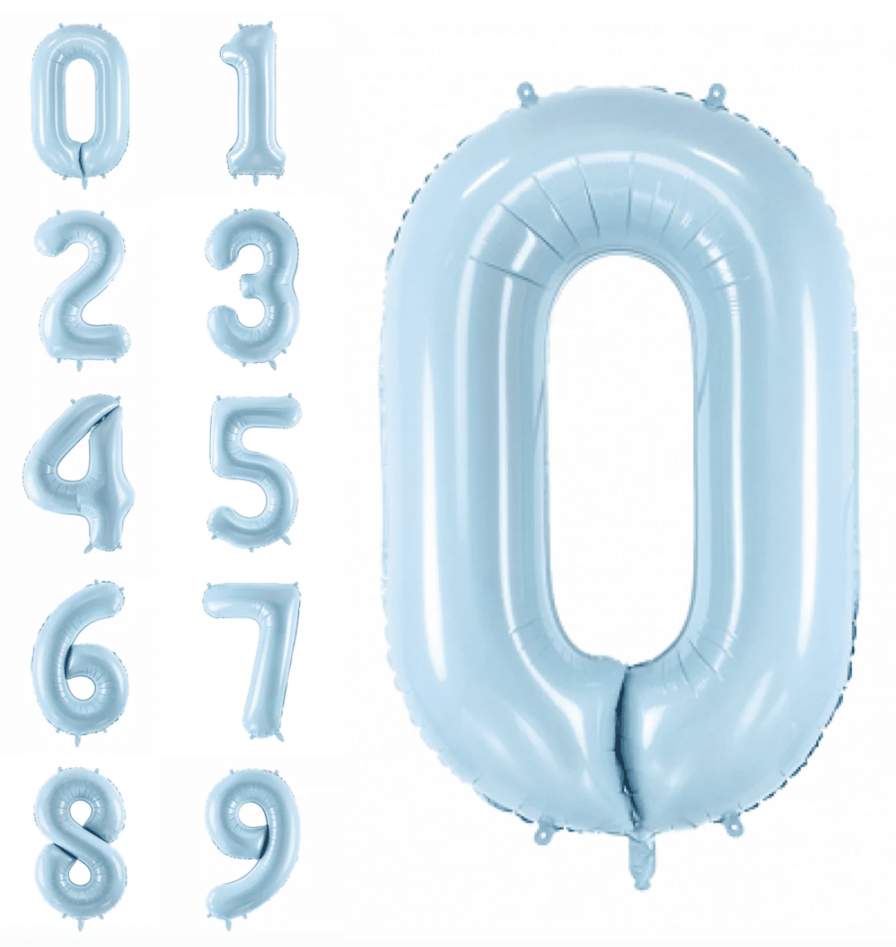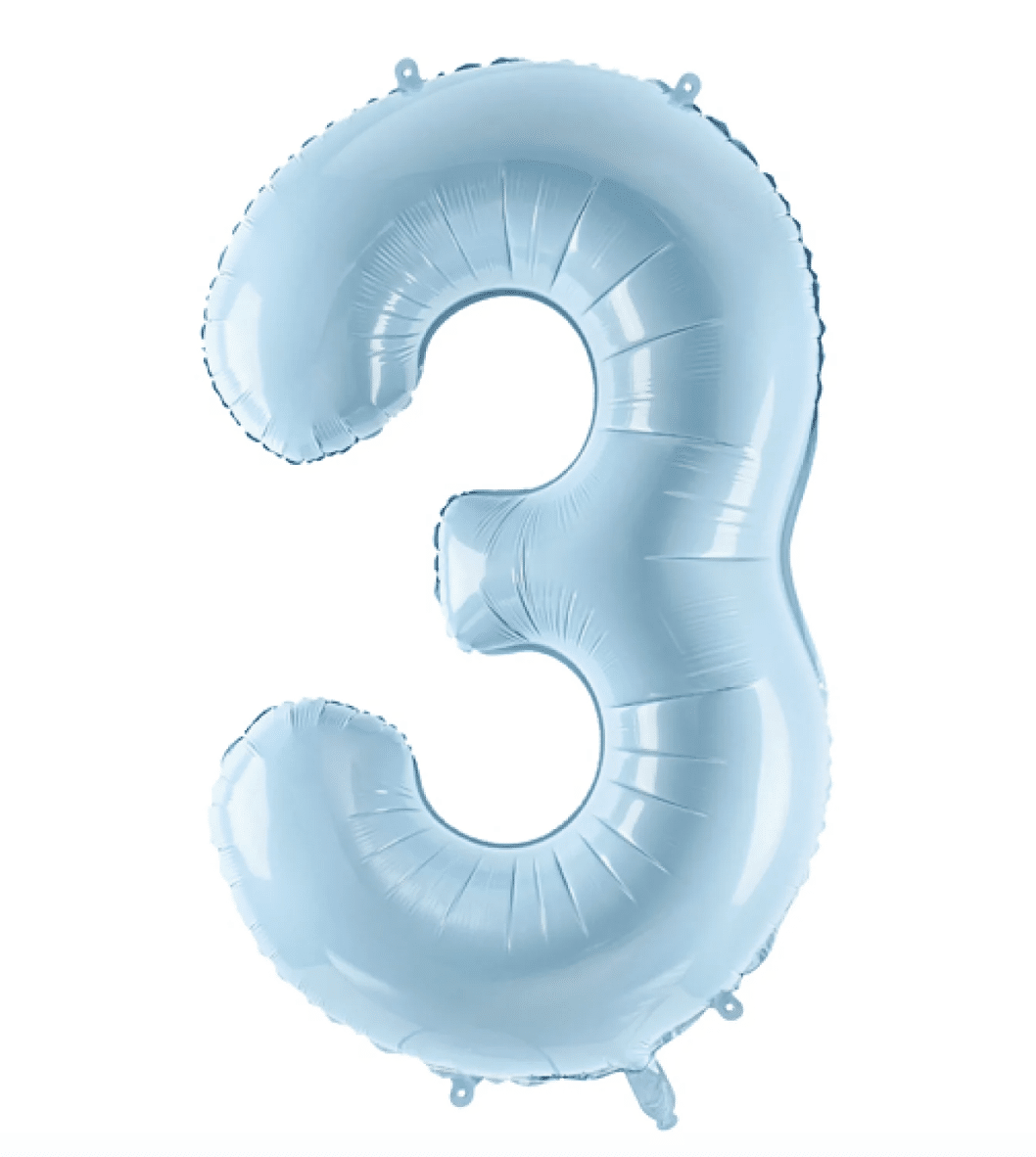 Тези цифри в цвят Baby Blue са създадени за комбинация с балони Gemar Powder Blue (#108) и Linen (#106). Използвайте ги за първия рожден ден на вашето момченце или за подчертаване на важна годишнина в нежна, пастелна тема.
