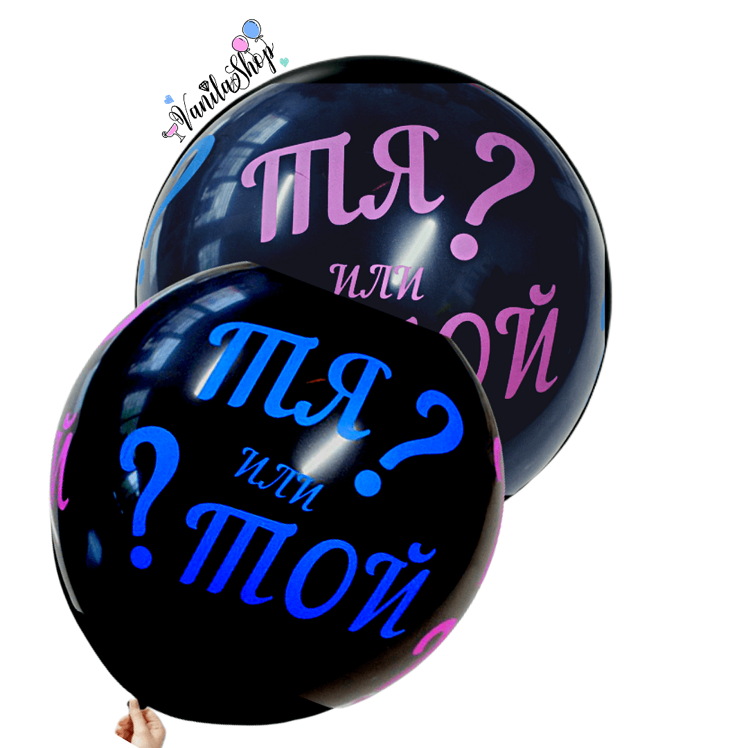 Джъмбо балон 60 см | с надписи в син и розов цвят – ” Тя или Той “. Пълни се с конфети и е страхотно допълнение за вашето бебешко парти. Балонът идва с конфети в избран от вас цвят.