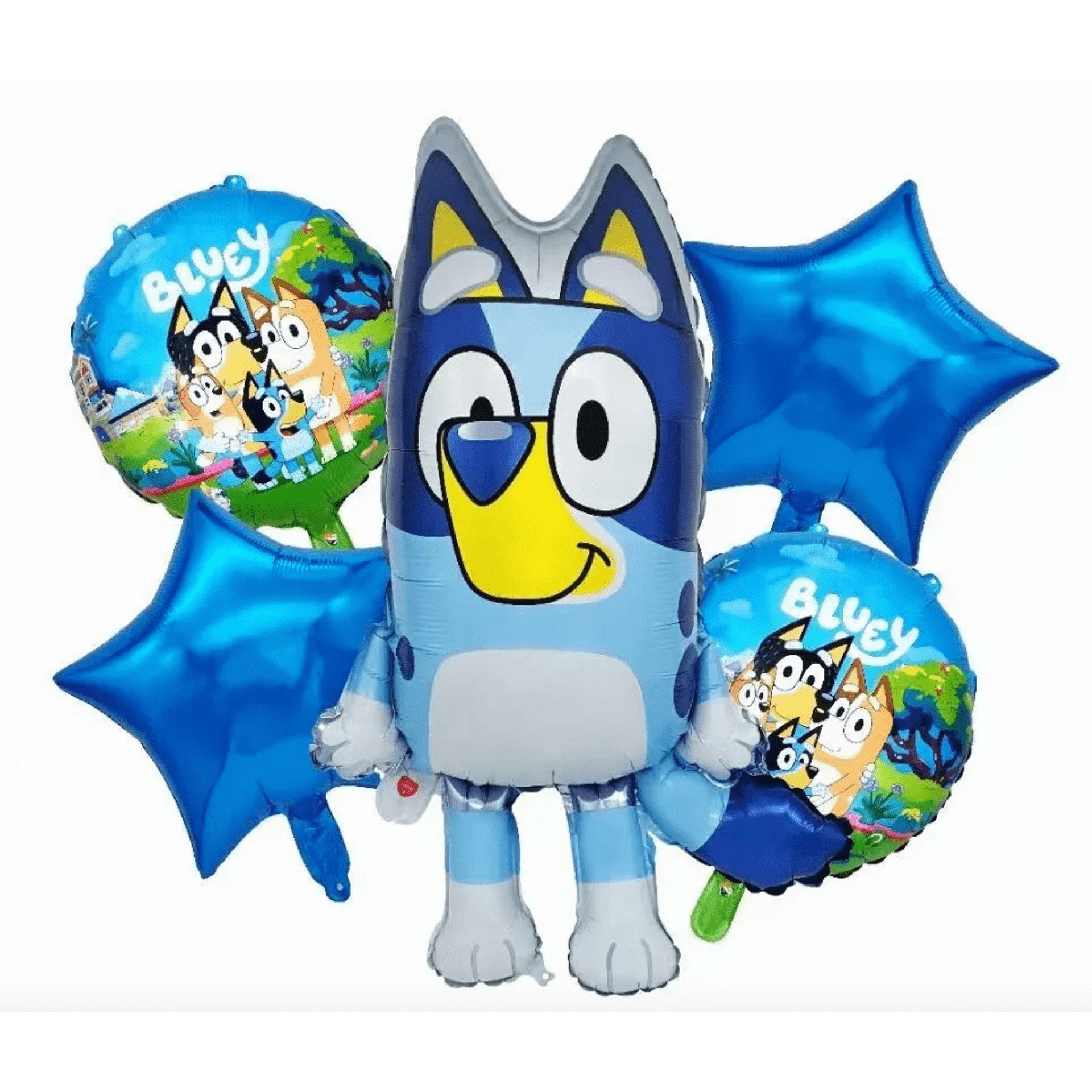 Балони фолио Блуи (Bluey) – 5 броя | надуват се лесно с уста чрез сламка включена в комплекта или с помпа.Балоните имат клапа и може да се надуват многократно.