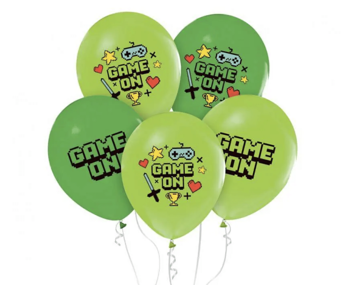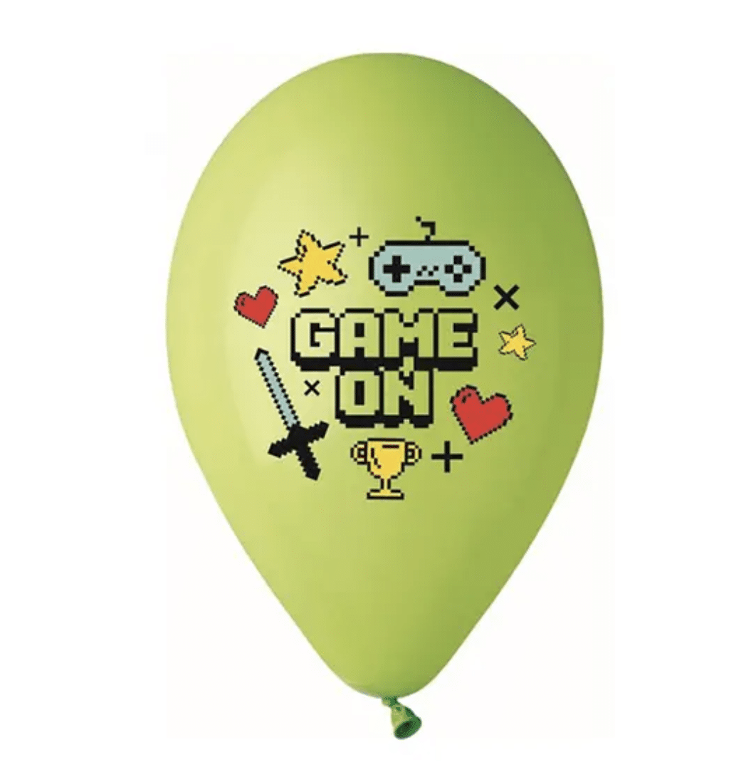 Комплект от 5 броя балони с геймърски дизайн Game On. Размер 30 см, изработени от висококачествен латекс с печат.