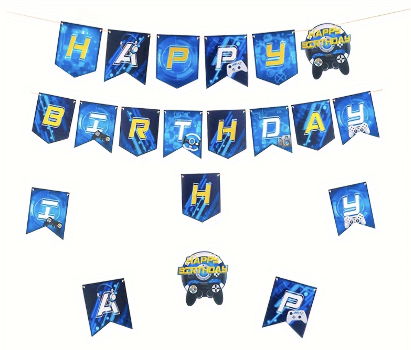 Парти банер с надпис “Happy Birthday” в стил Game On – идеален за всички малки и големи геймъри!