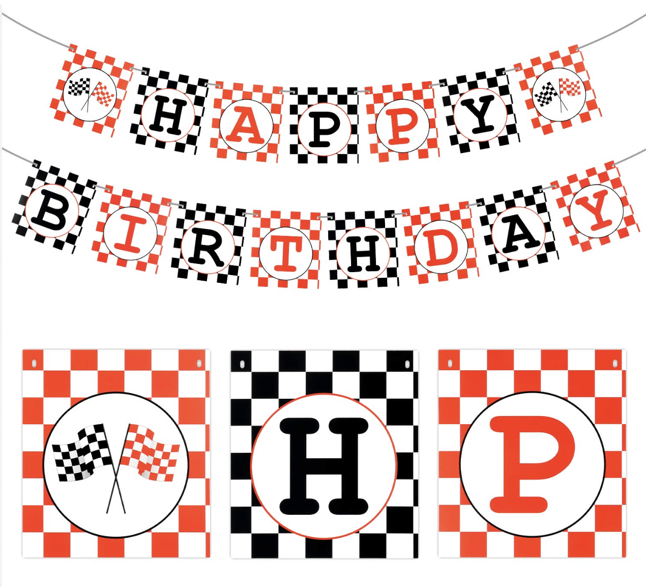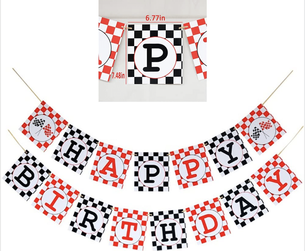 Парти банер с надпис “Happy Birthday” в стил Рали – перфектен за малки почитатели на коли и състезания!