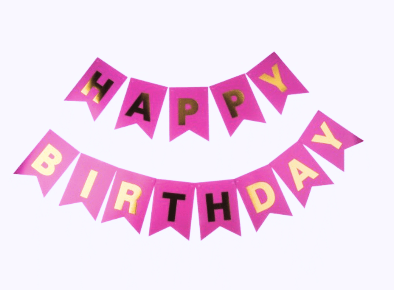 Нежен и елегантен банер „HAPPY BIRTHDAY“ в цикламен цвят със златисти букви – перфектна декорация за рожден ден на дете или възрастен. Пастелната визия го прави подходящ както за момичешки партита, така и за стилни празненства с изчистена украса.