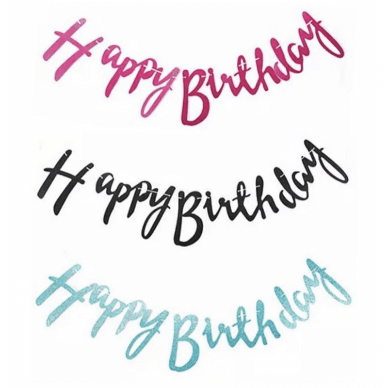 Банер за рожден ден ” Happy Birthday” – Глитер черен