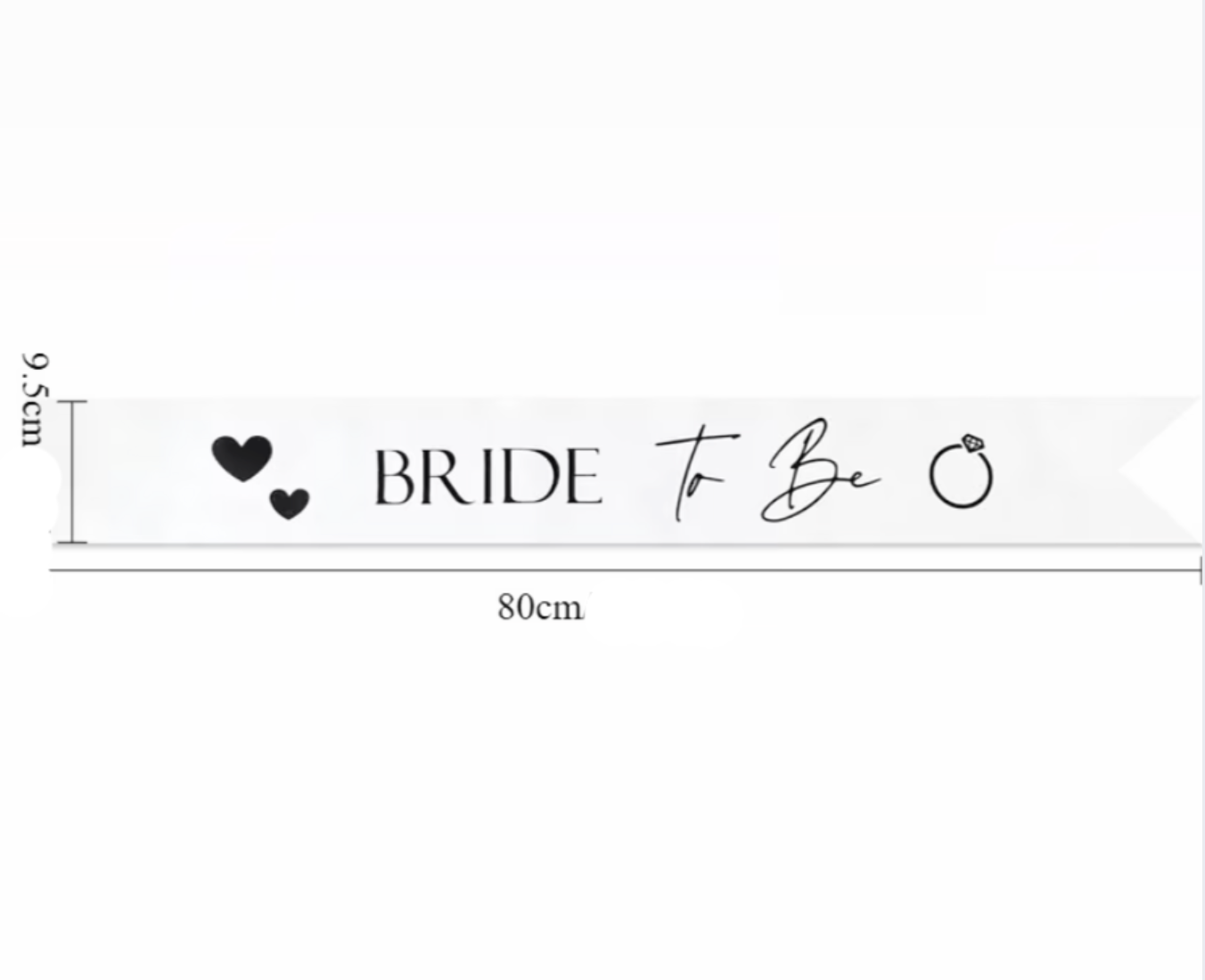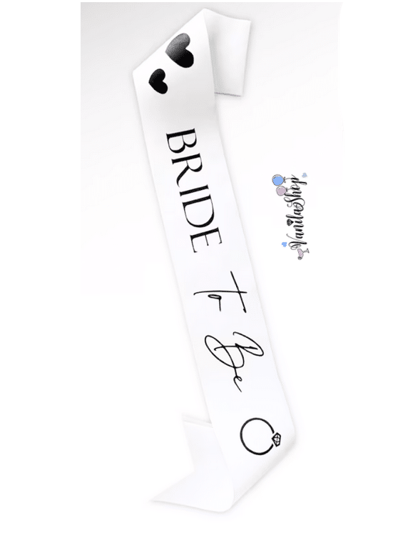 Направете моминското парти още по-специално с тази стилна и нежна лента за бъдещата булка! 💍✨ Комбинирайки класически бял цвят с модерен шрифт и забавни графични елементи, този аксесоар е задължителен за всяко предсватбено тържество.