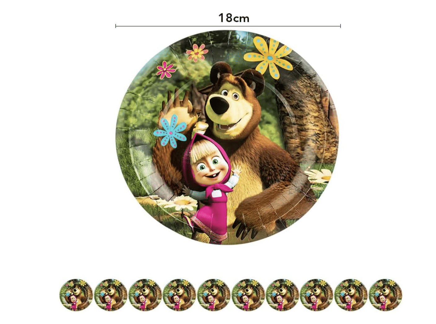 Парти чинии „Маша и Мечока“ (Masha and the Bear) – 10 броя, 18 см
