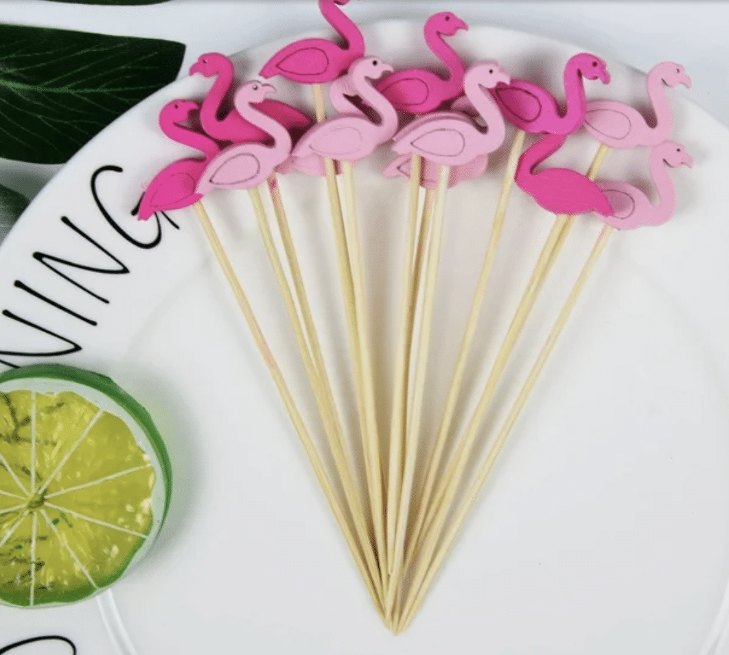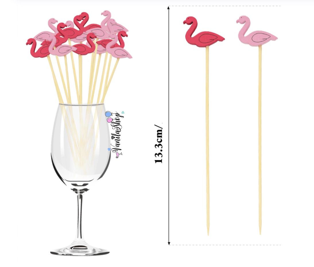 Внесете тропически шик във вашия празник с тези ефектни топери фламинго. Перфектният избор за лятно парти, рожден ден на басейна, моминско парти или тематично събитие в стил „Хаваи“. Тези декоративни клечки превръщат всяко питие или десерт в истинско бижу.