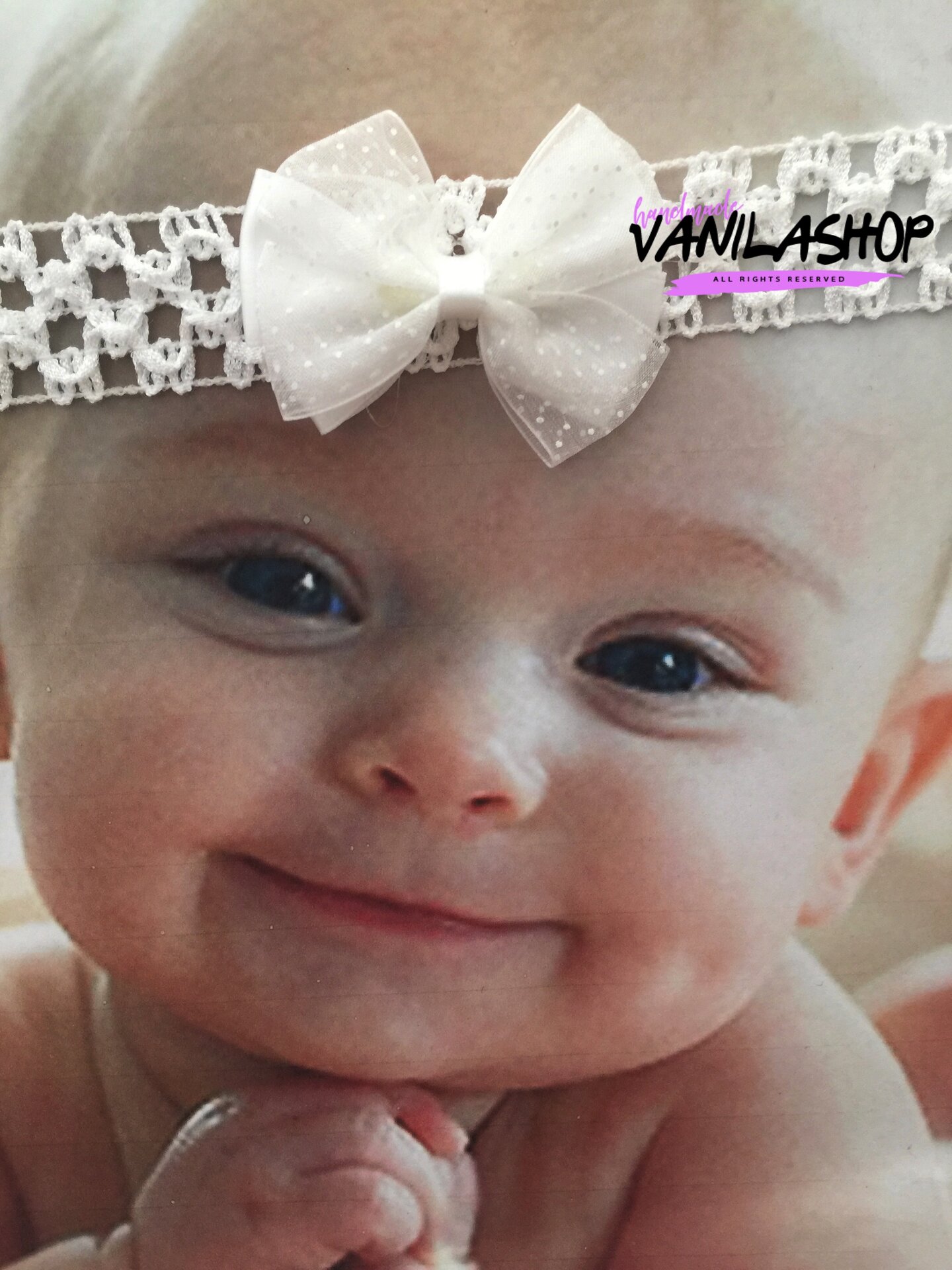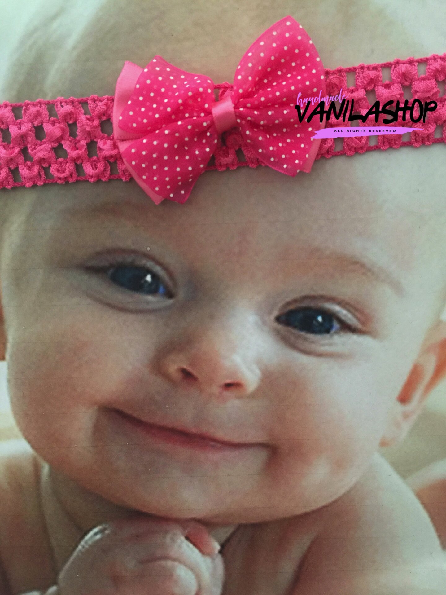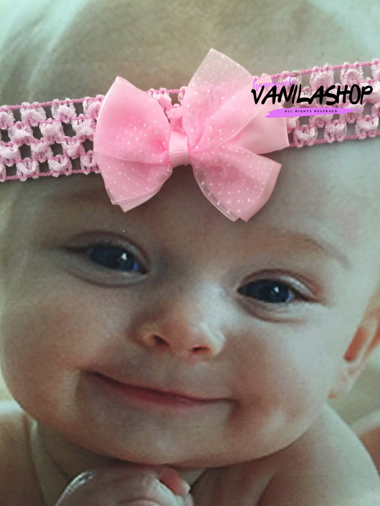 Страхотна детска лента за глава с панделка от органза на точки в три цвята от разтегателна и много мека плетена лента подходяща за бебета и по големи момичета
