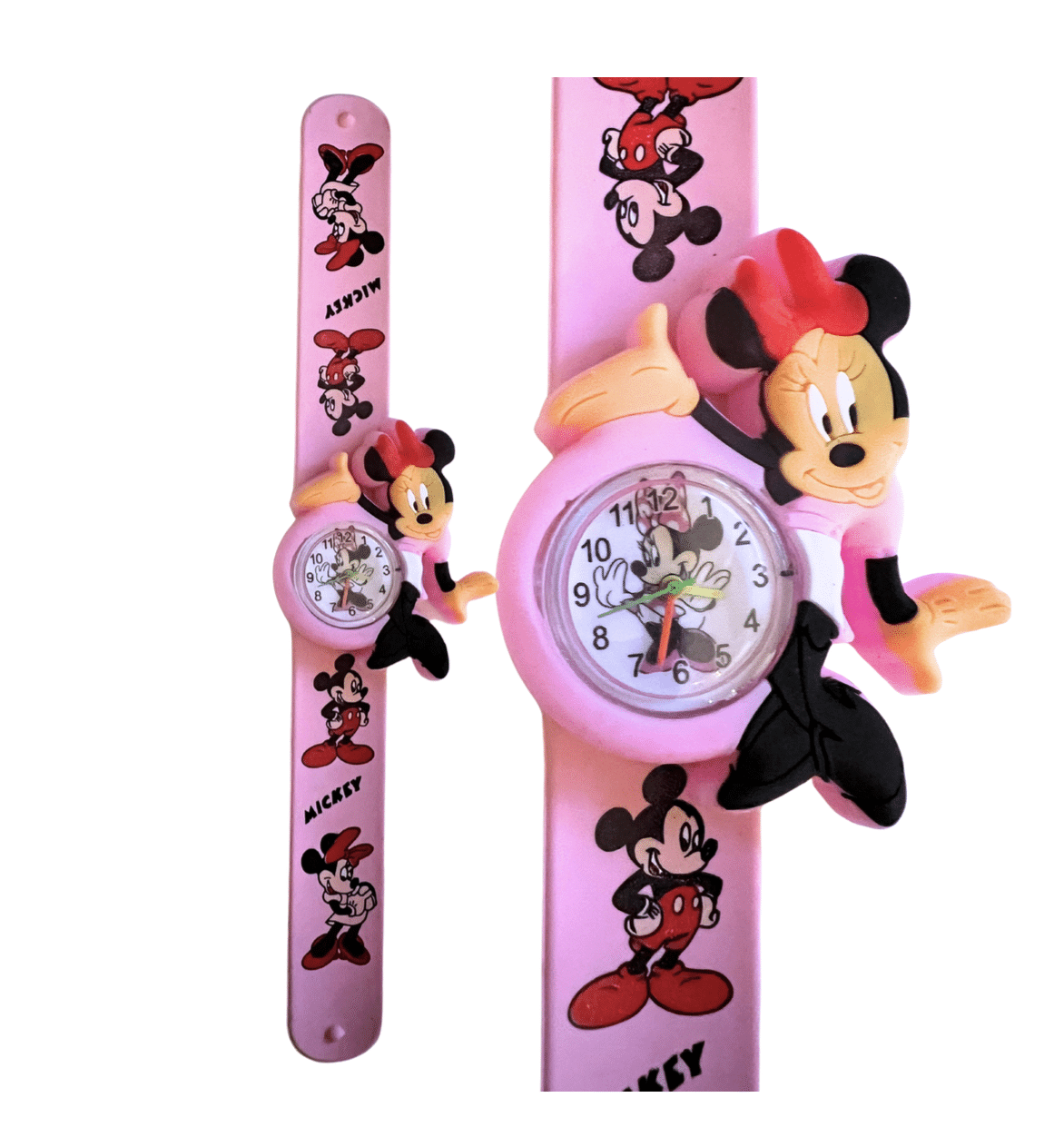 Забавен и цветен часовник с любимата героиня Пепа Пиг, подходящ за малките фенове на детските анимации! Благодарение на slap лентата (щракало), часовникът се поставя лесно и удобно — само с едно движение около китката.
