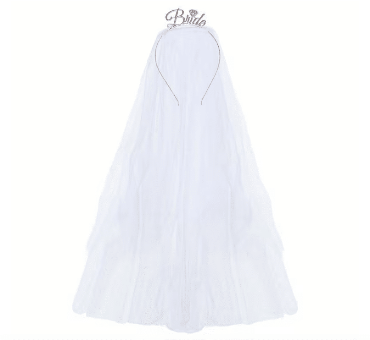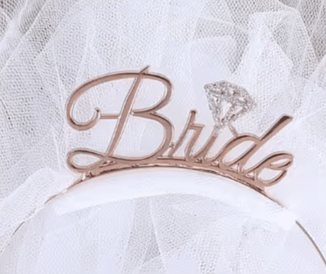 Сладурска диадема с надпис  в розово злато BRIDE  и двоен воал 60 см