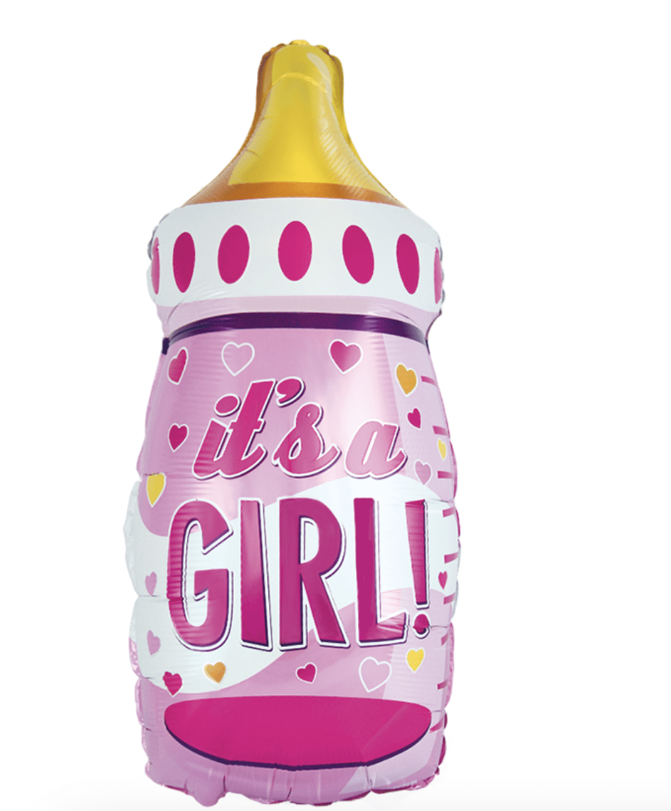 Нежен и стилен фолиев балон във форма на бебешко шише с надпис “It’s a Girl!” – перфектен акцент за посрещане на малка принцеса. Подходящ за baby shower, раждане, изписване от родилния дом или празнична декорация.