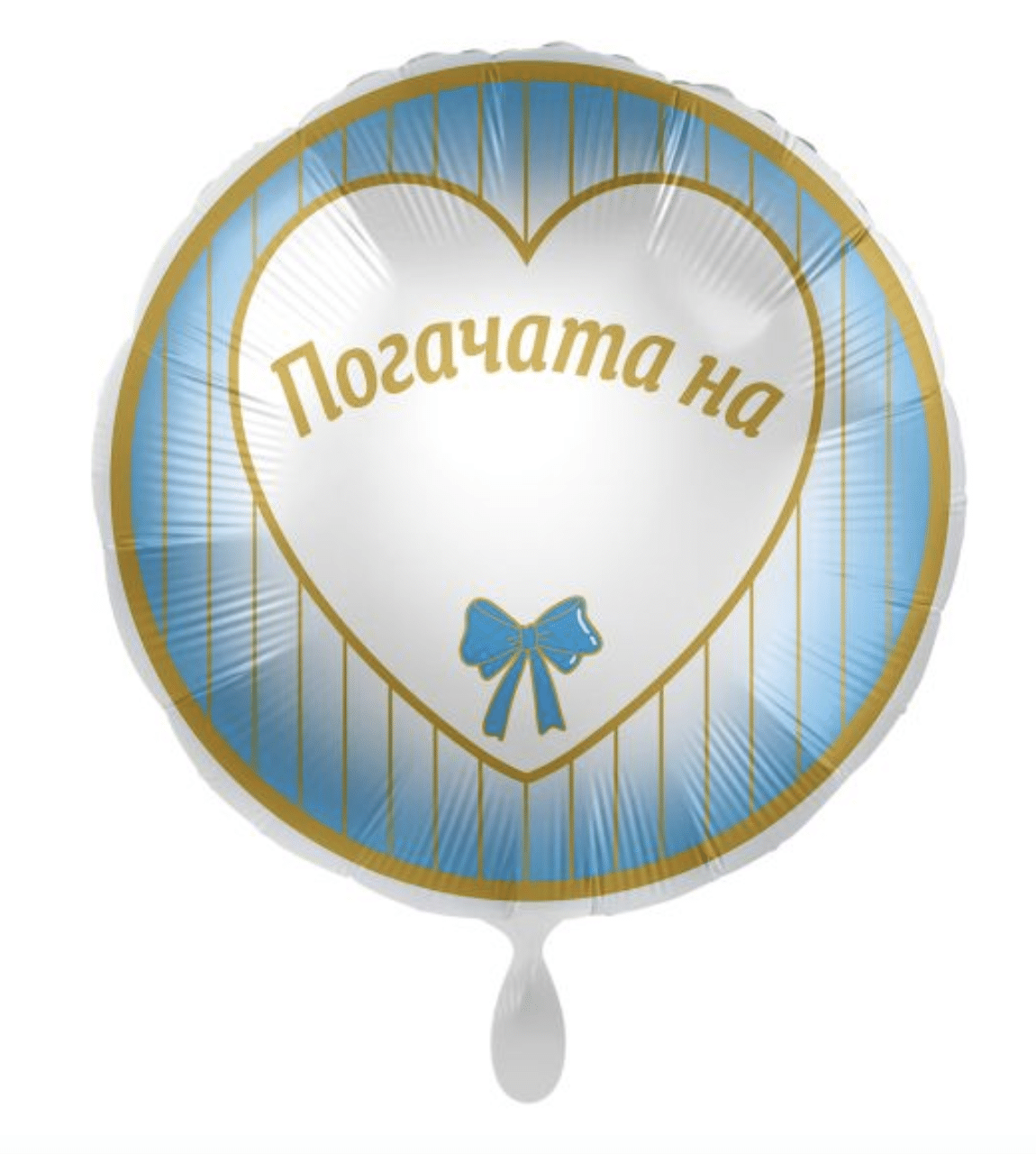 🎀 Фолиев балон „Погачата на…“ – синьо и златно