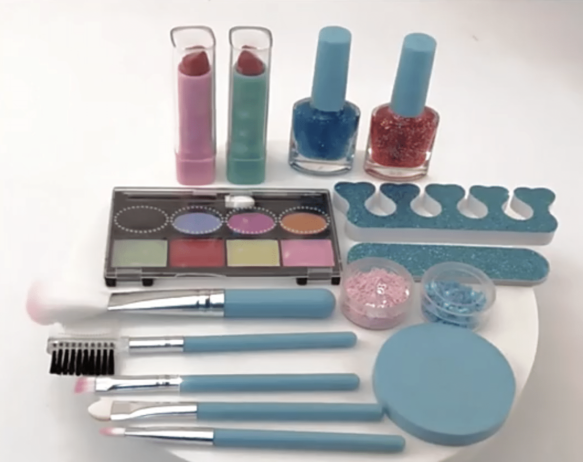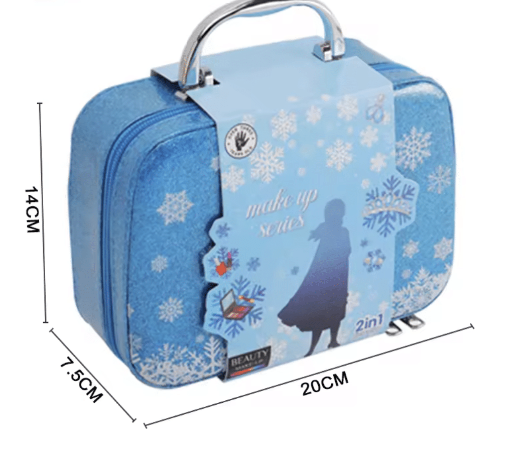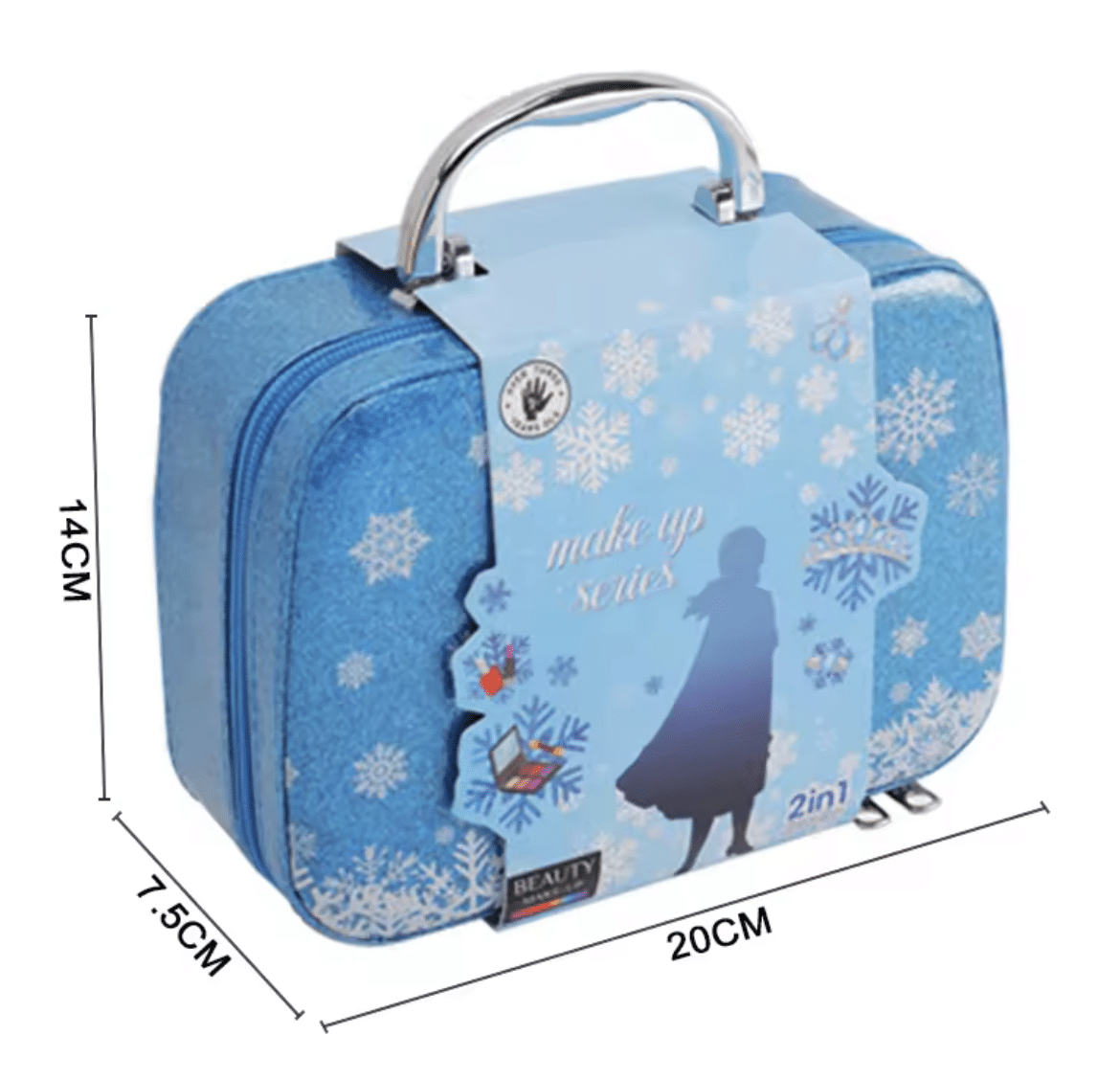 Подарете магическо преживяване с този очарователен детски козметичен комплект в красиво синьо куфарче, вдъхновено от зимната приказна тема. Комплектът е тип 2 в 1 – стилен куфар за съхранение и пълен сет с детска декоративна козметика и аксесоари. Идеален за ролеви игри, творчество и забавление, той насърчава въображението и фината моторика на децата.