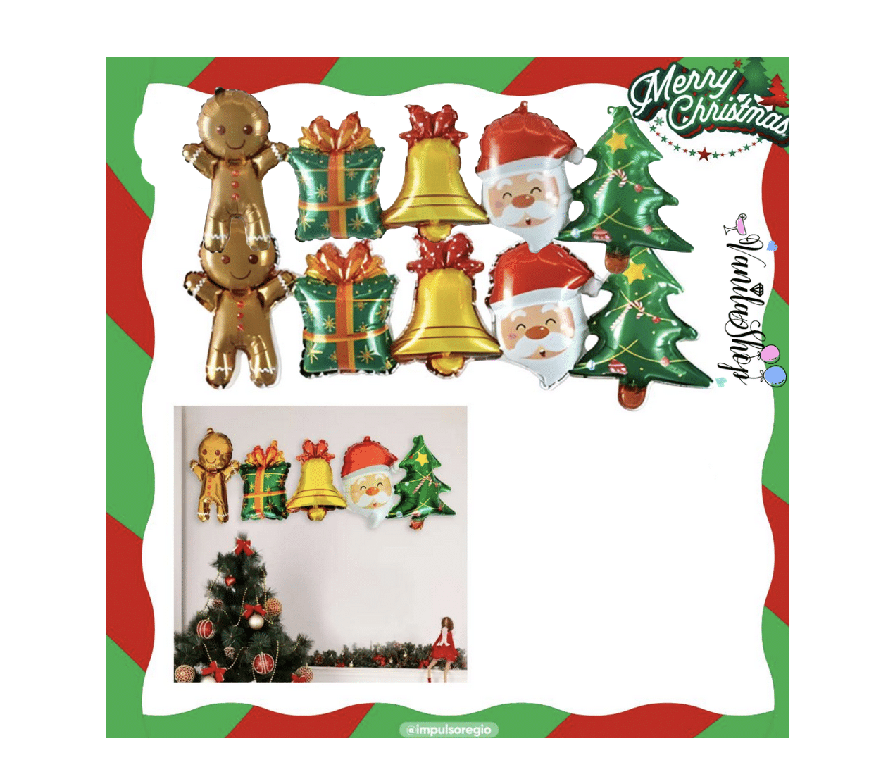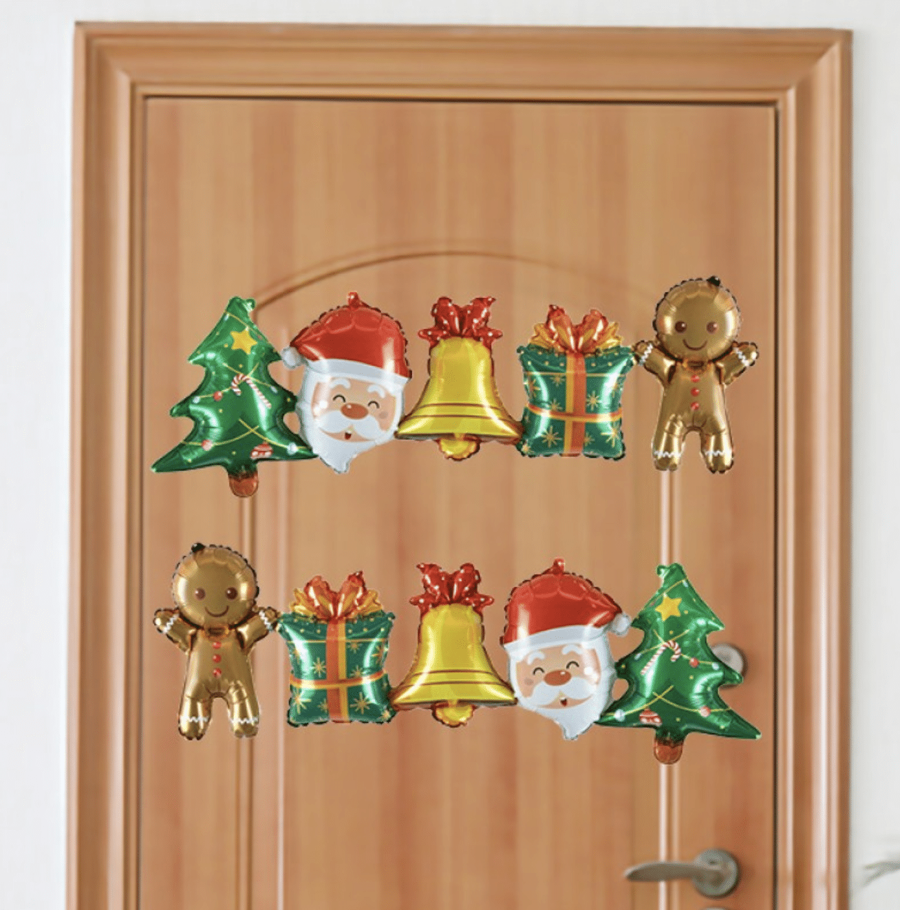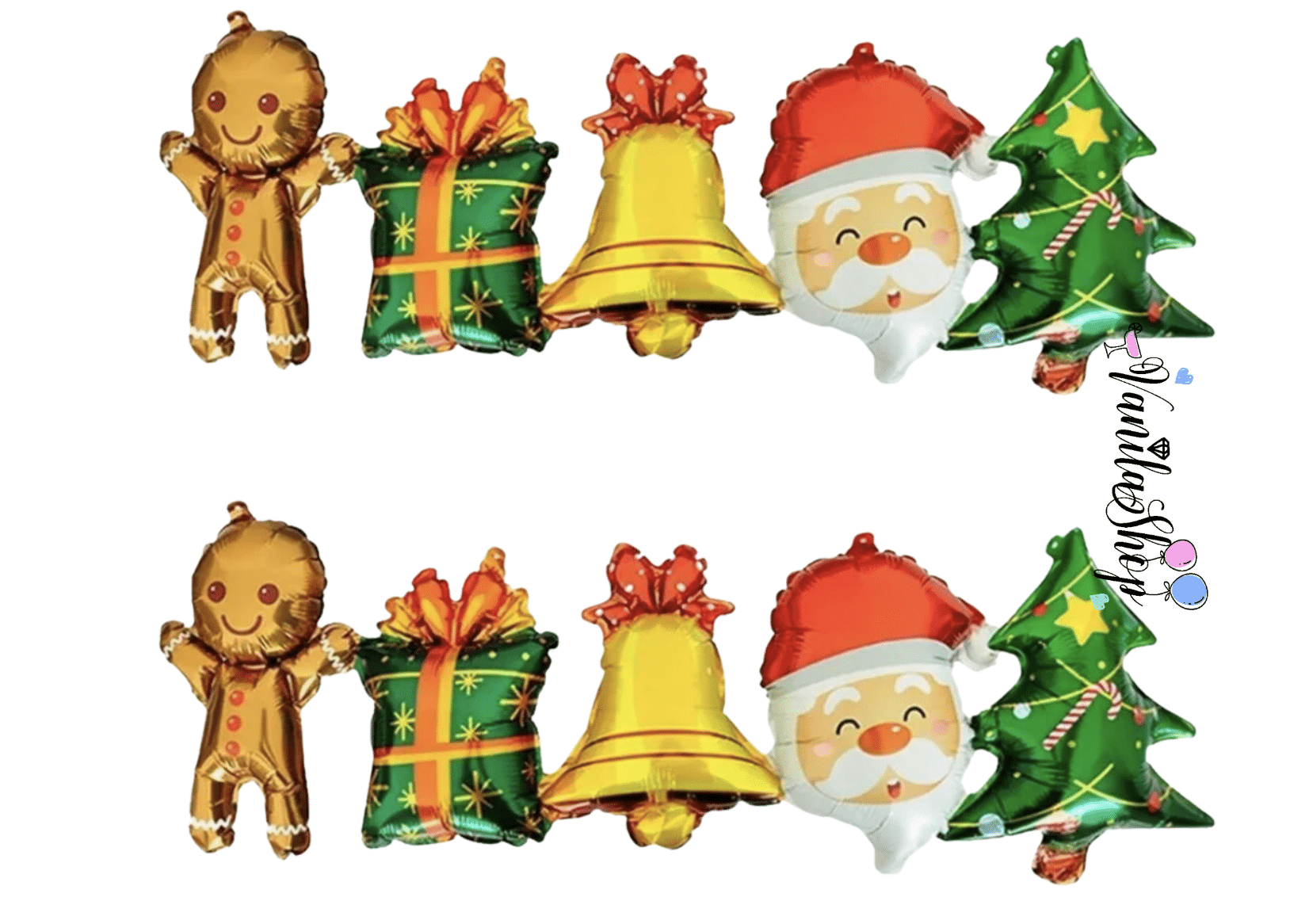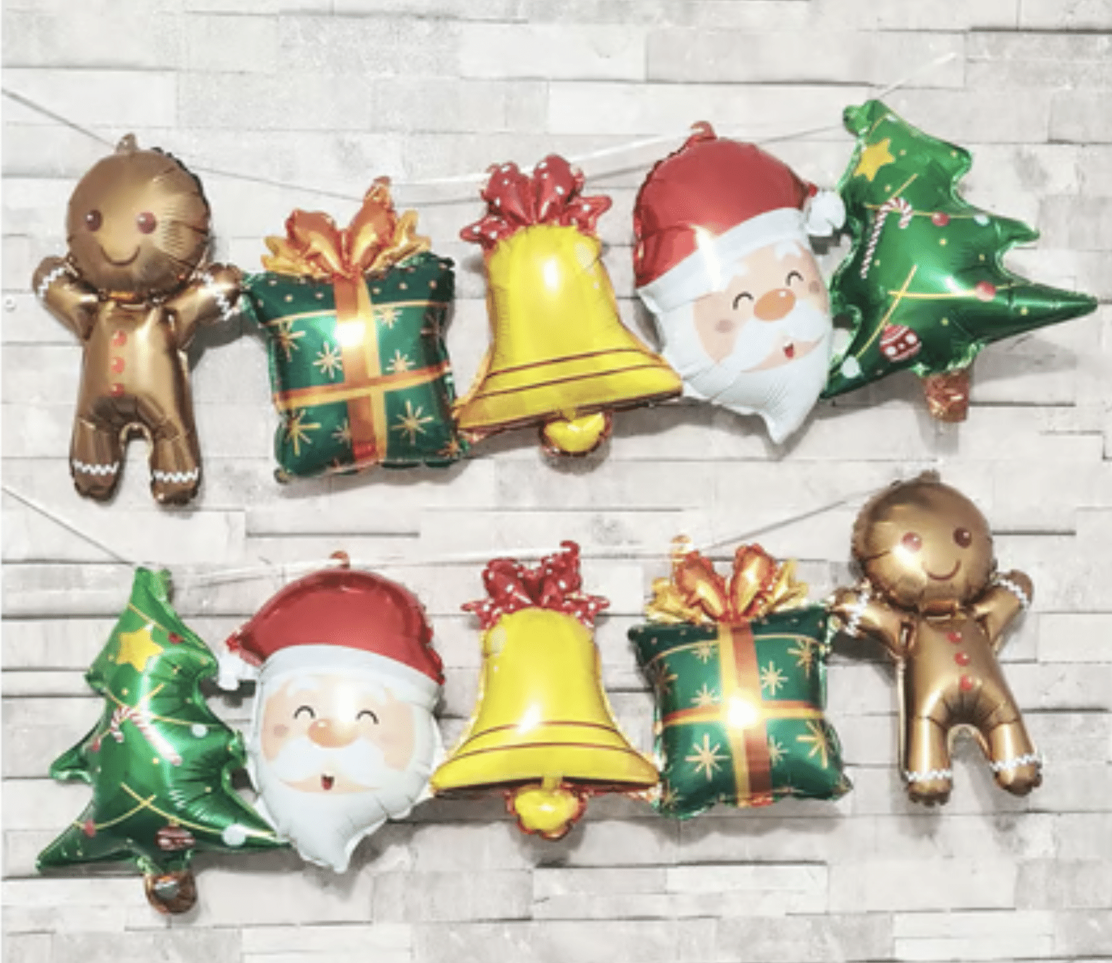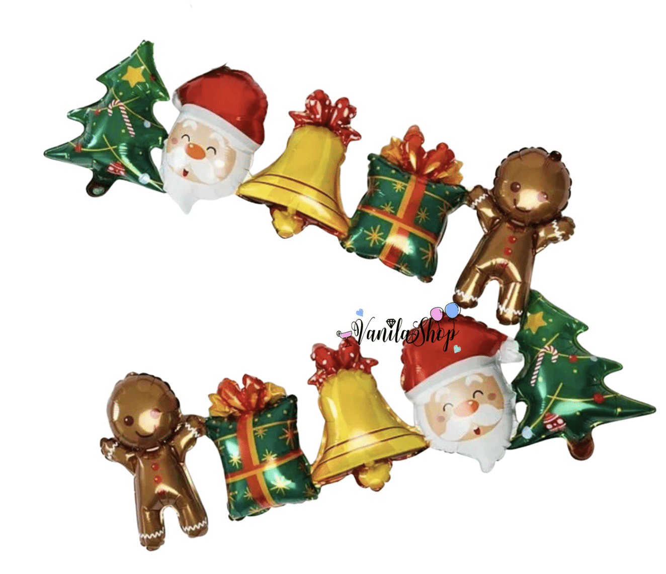 Създайте празнична атмосфера с този комплект от два коледни фолиеви гирлянда, всеки с дължина 1 метър и височина на фигурките около 35 см. Дизайнът включва ярки и забавни коледни мотиви – човече от джинджифил, подарък, камбанка, Дядо Коледа и коледно дърво.