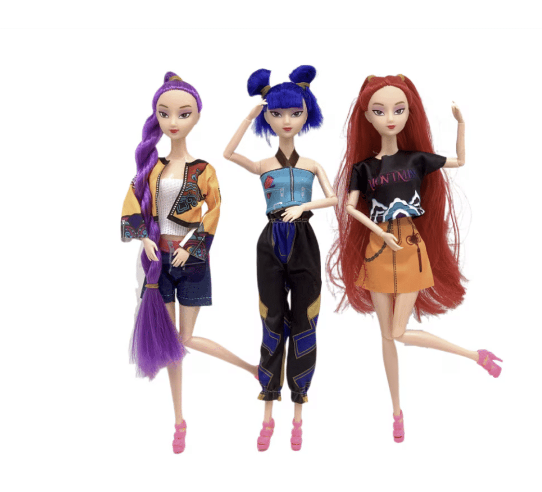 Потопете се в света на корейската поп вълна с комплекта K-Pop Devil Hunter Girls! Трите кукли – Руми, Мира и Зоуи (31 см) – впечатляват с уникален стил, ярки цветове и пълна артикулация за невероятни пози. Изработени от висококачествен PVC материал, те са идеалният подарък за фенове на модата и K-pop културата. Поръчайте сега на отлична цена