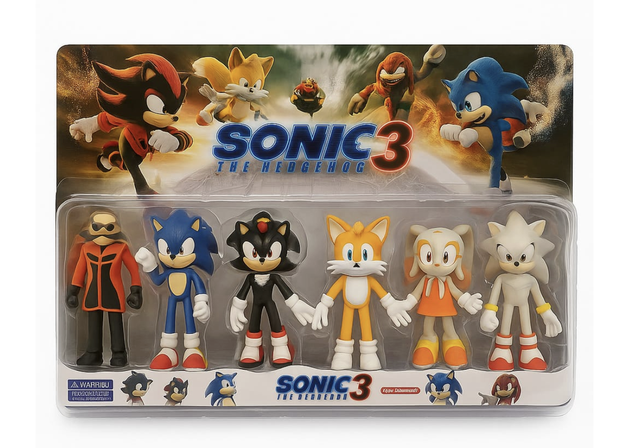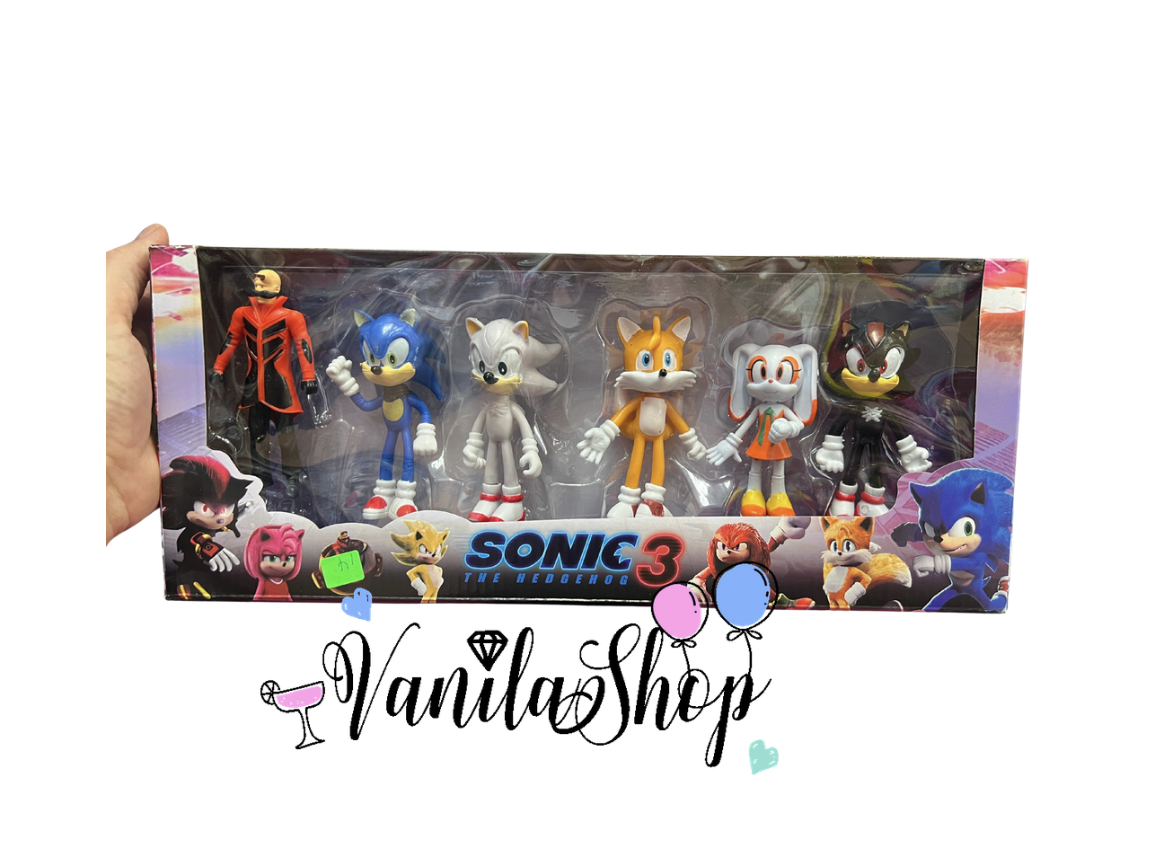 Подарете забавление и приключение с този страхотен комплект от 6 фигурки Sonic 3! Включва любими герои от вселената на Соник, подходящи както за игра, така и за колекционерска украса. Изработени от качествена пластмаса, фигурките са с ярки цветове и детайлна изработка, което ги прави идеален подарък за фенове на емблематичната видео игра и филм.