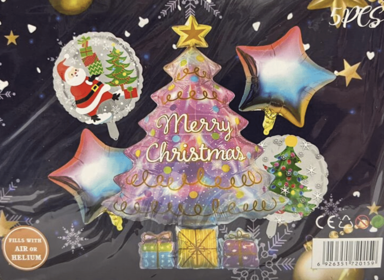 Създайте празнична и уютна атмосфера с този красив комплект коледни фолиеви балони, включващ централна елха с надпис “Merry Christmas“ и допълващи декоративни балони със звезди и коледни мотиви. Идеален избор за домашна украса, коледни партита, фотокътове и празнични събития.