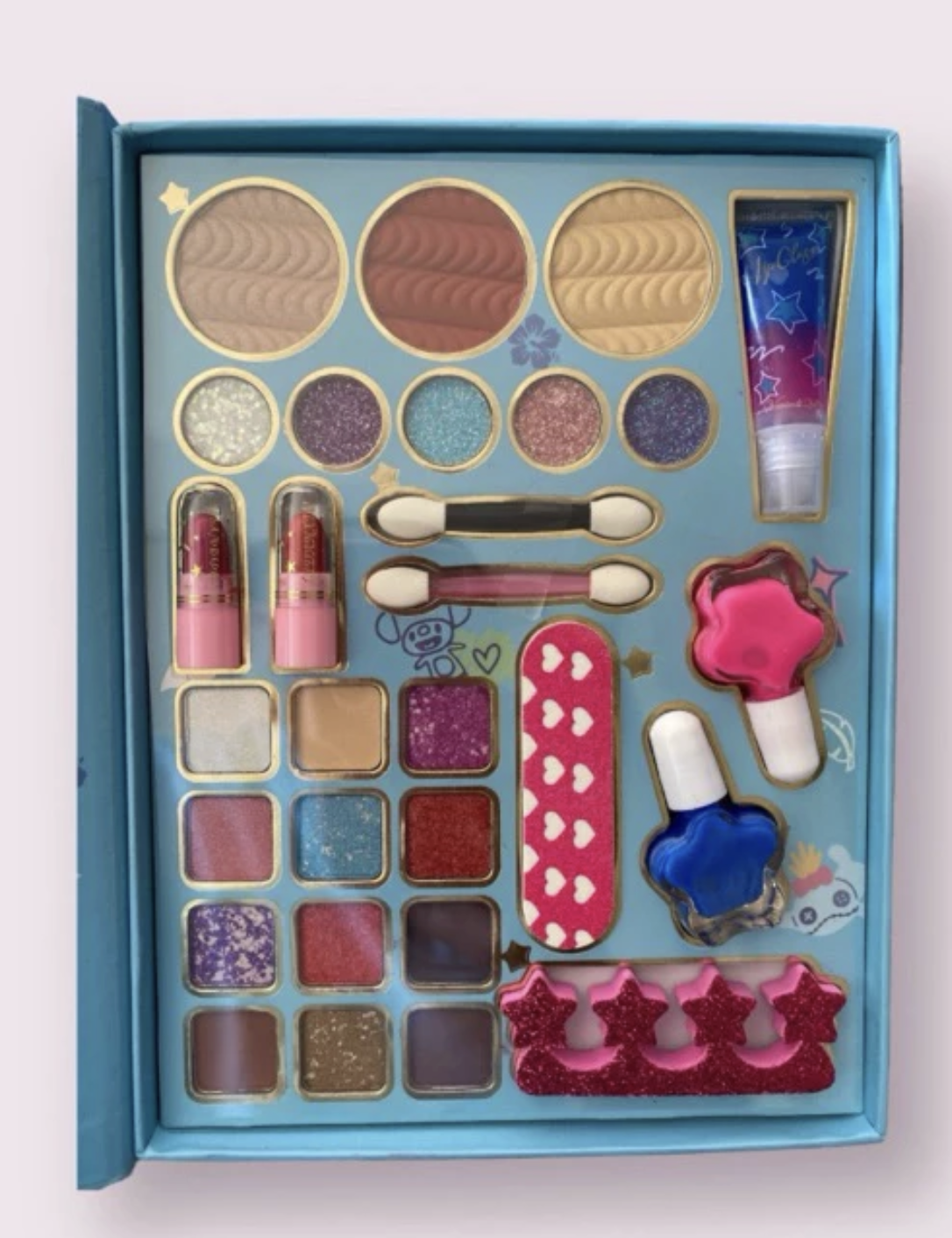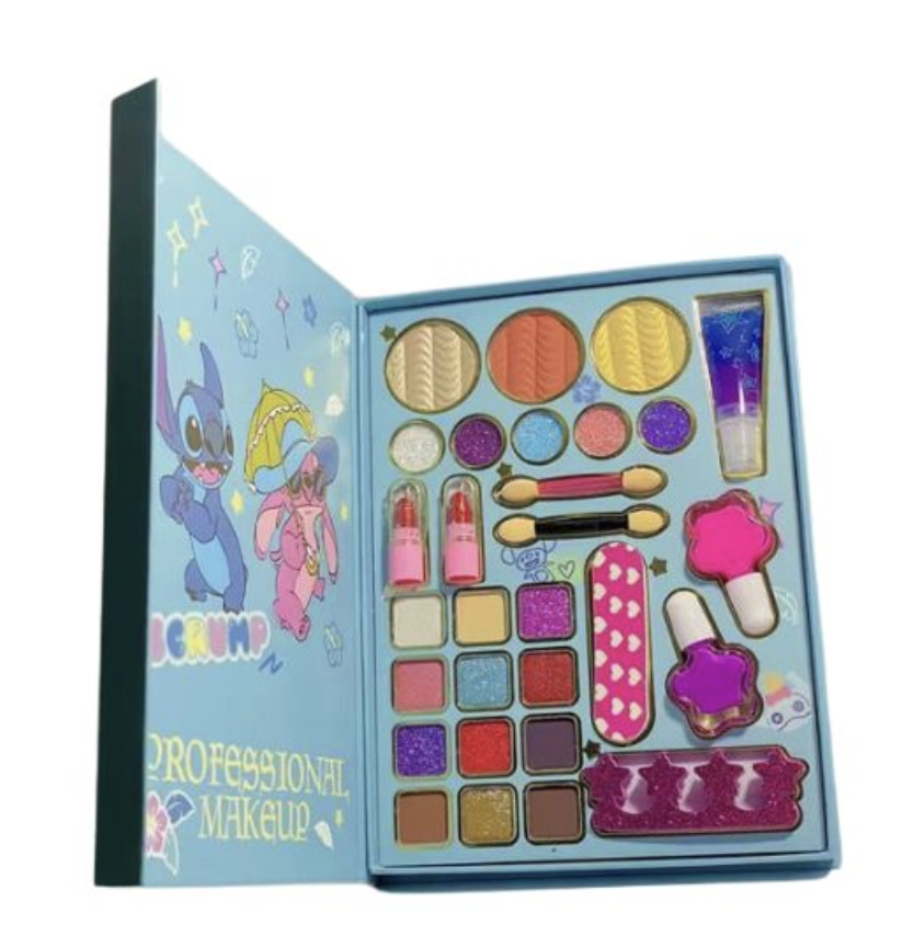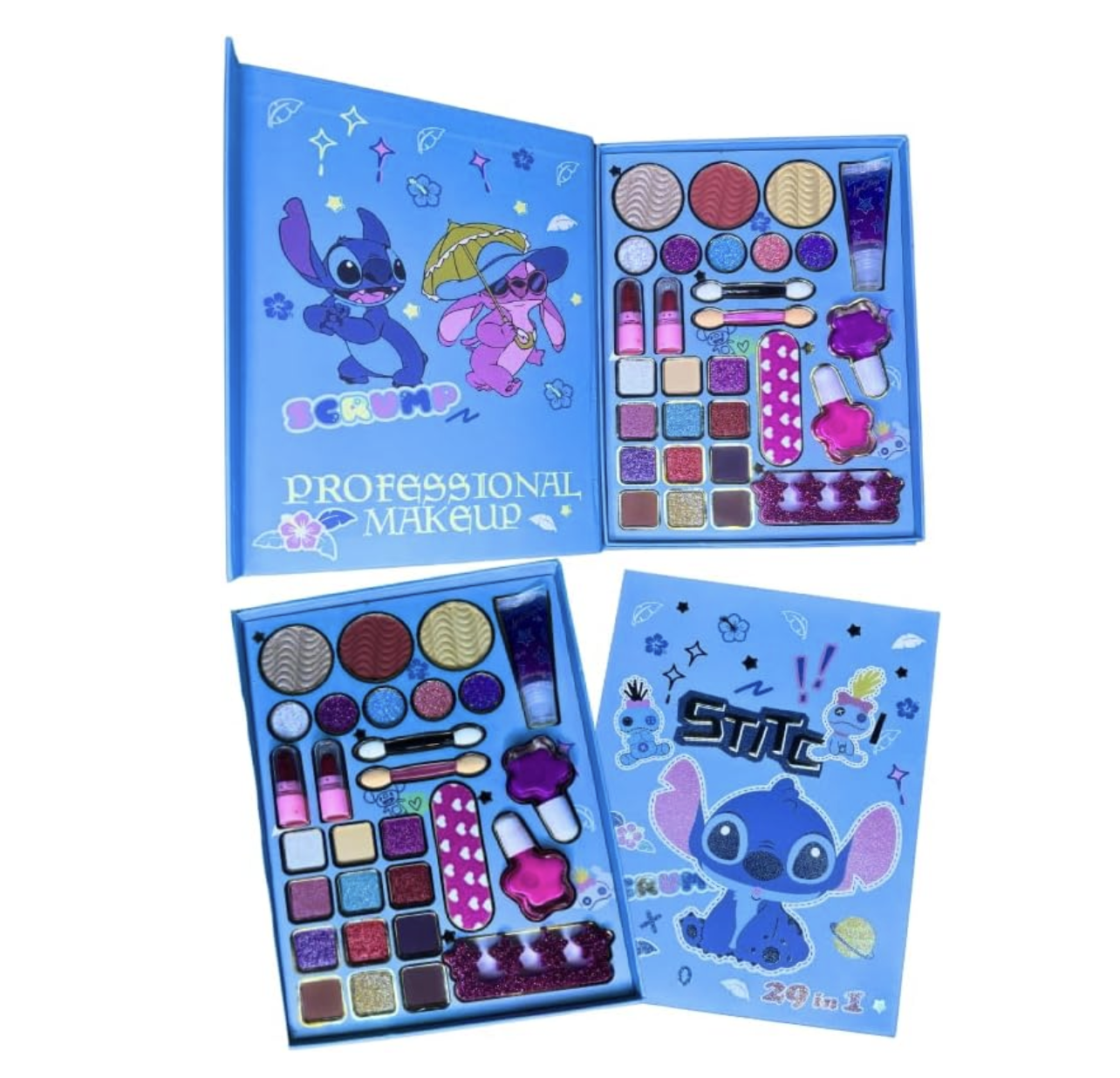 Идеален подарък за малки принцеси и фенове на Стич ! Този комплект предлага всичко необходимо за забавление и креативност с безопасни козметични продукти.
