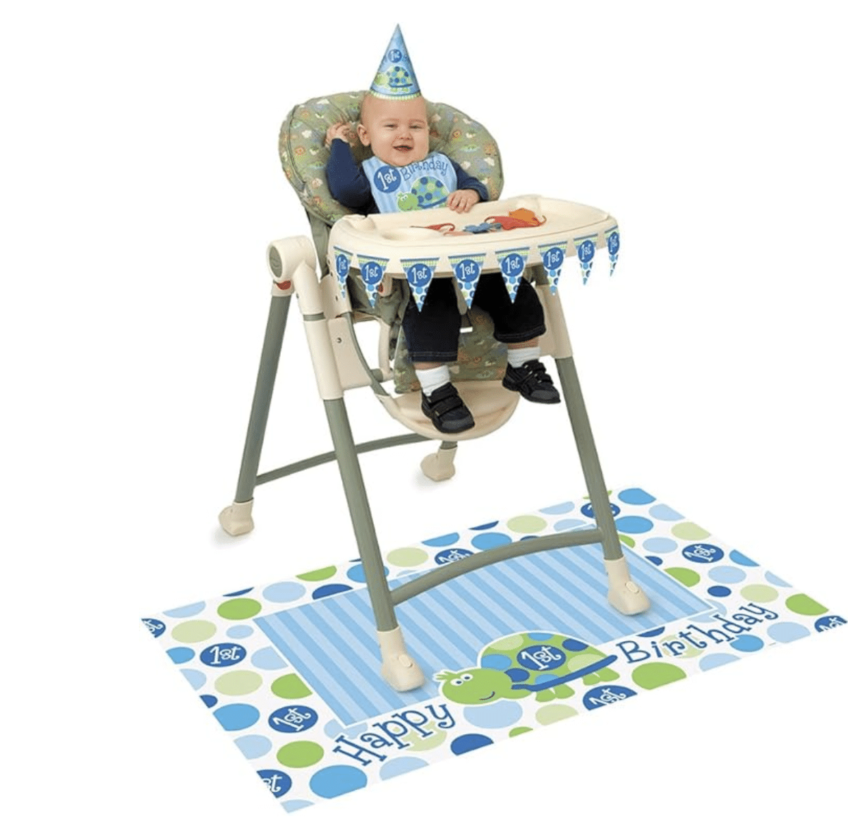 1 брой мини банер (флагчета): С дължина от 81,28 см, идеален за окачване пред масичката на столчето за хранене.