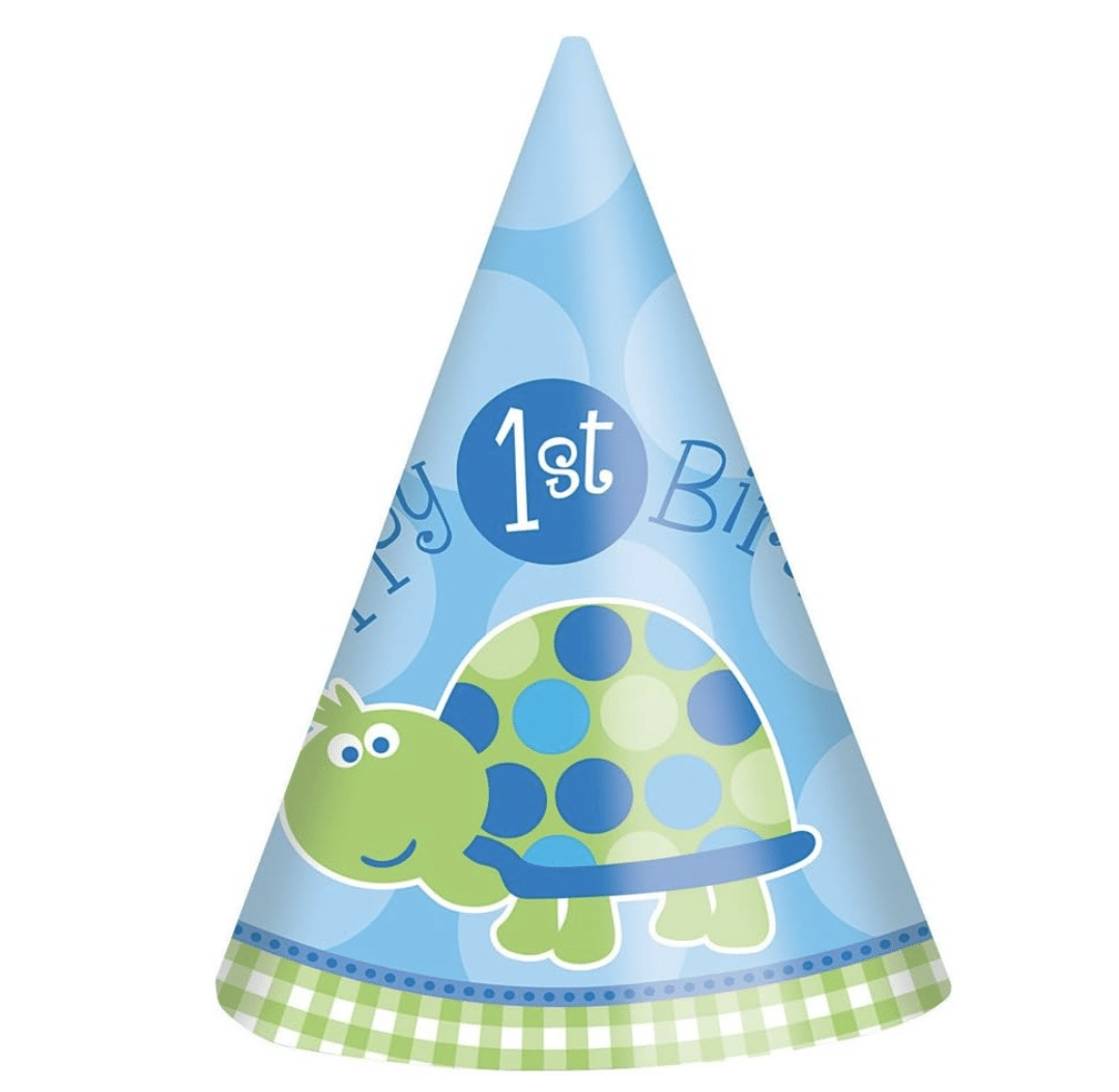 1 брой празнична шапка: Класически конус с дизайн на костенурка, за да бъде рожденикът звездата на вечерта.
