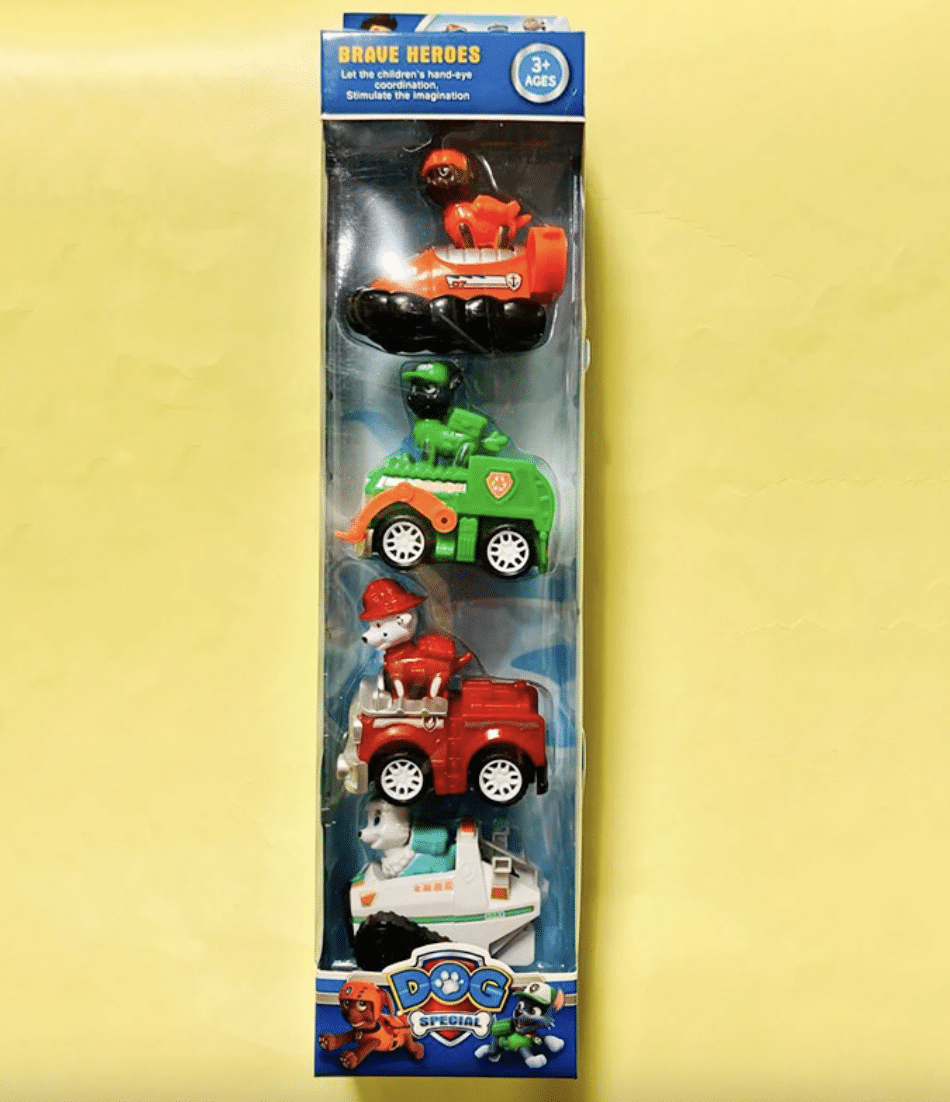 Страхотен комплект от 4 мини колички Пес Патрул (Paw Patrol), вдъхновен от любимите кученца герои – смелите спасители от популярния детски сериал! Подходящ за деца над 3 години, комплектът ще донесе часове забавление и ще развие въображението и координацията на малките фенове на Пес Патрул.