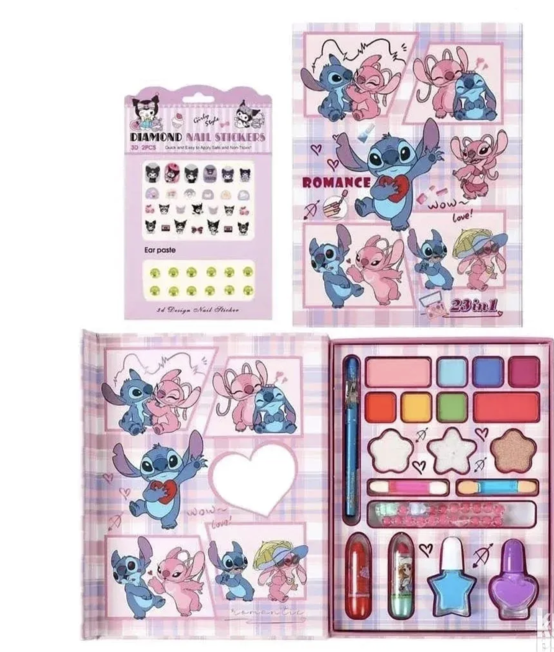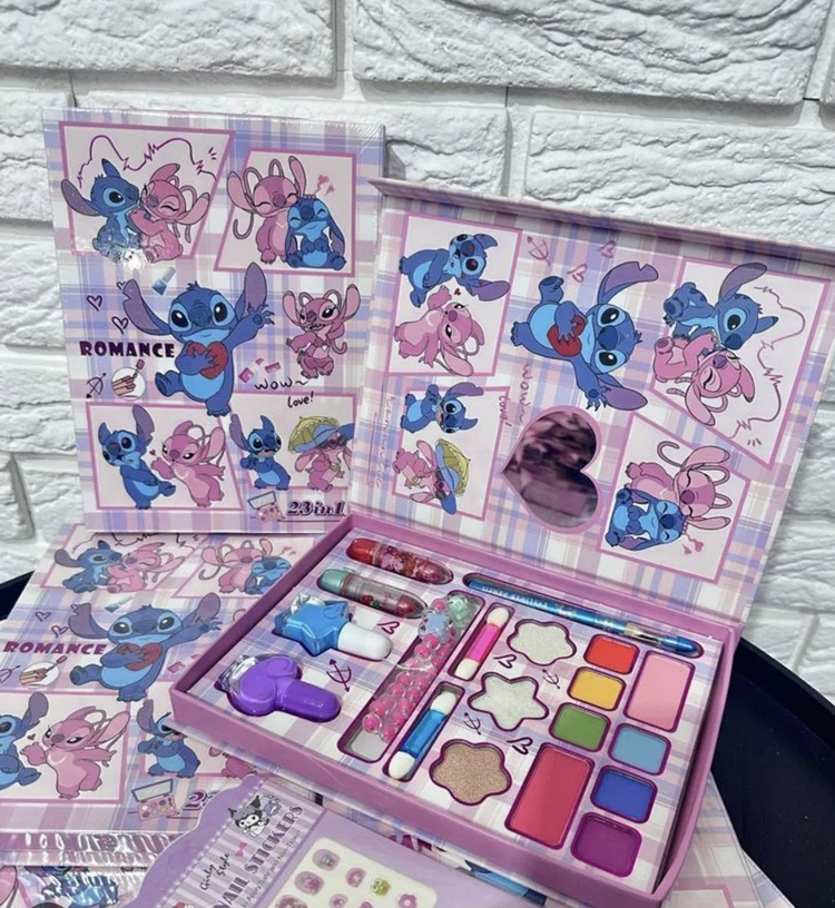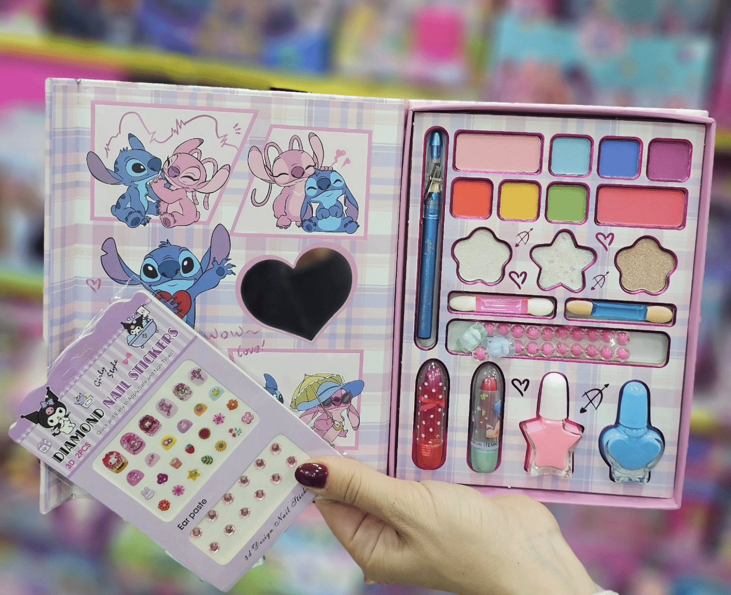 Идеален подарък за малки принцеси и фенове на Стич ! Този комплект предлага всичко необходимо за забавление и креативност с безопасни козметични продукти.