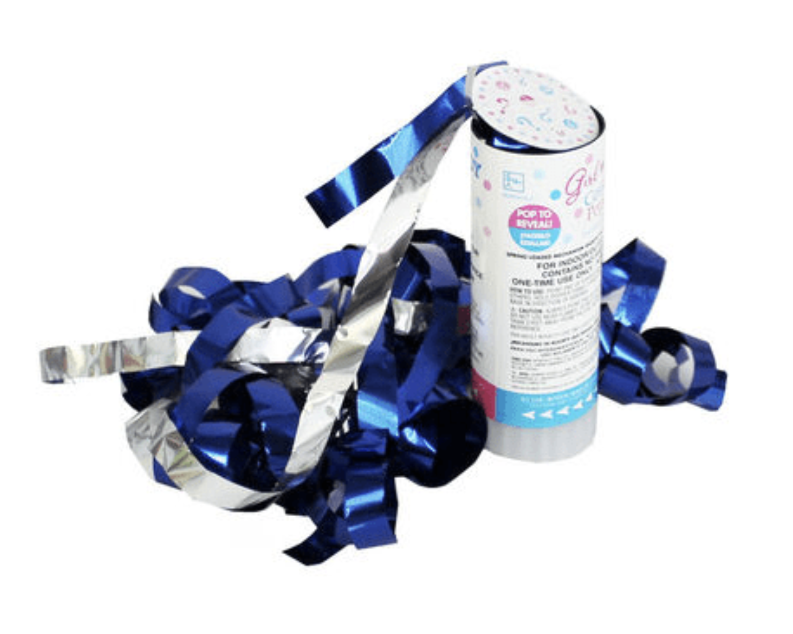 Създайте емоционален и запомнящ се момент с тази компактна конфета сини ленти – 15 см, перфектна за разкриване, че очаквате момченце!
