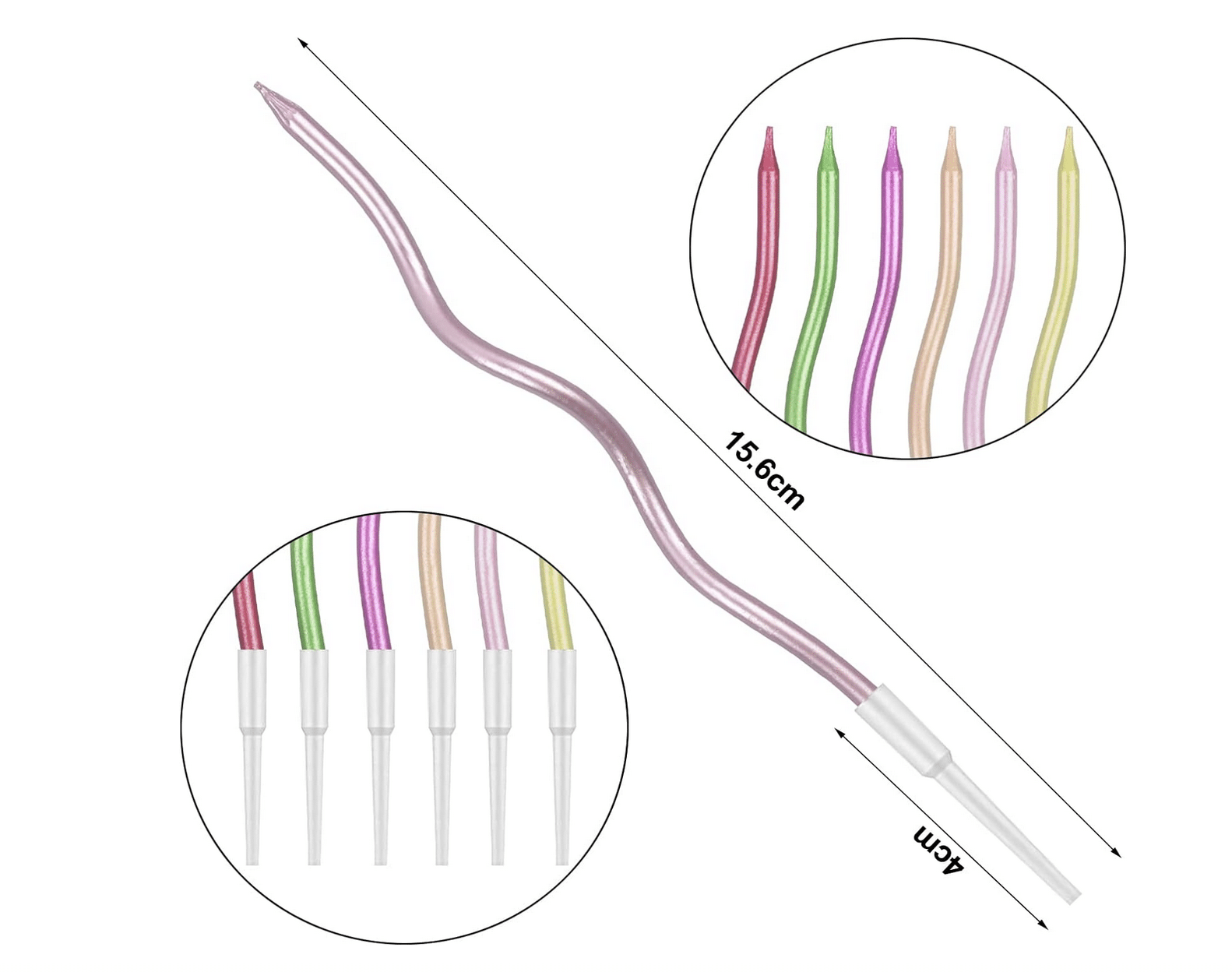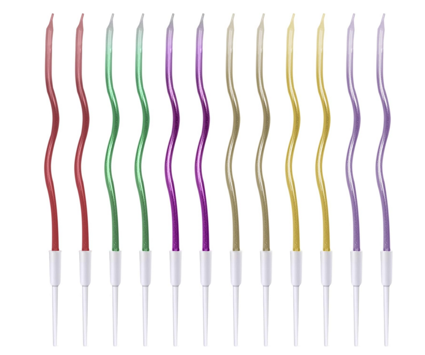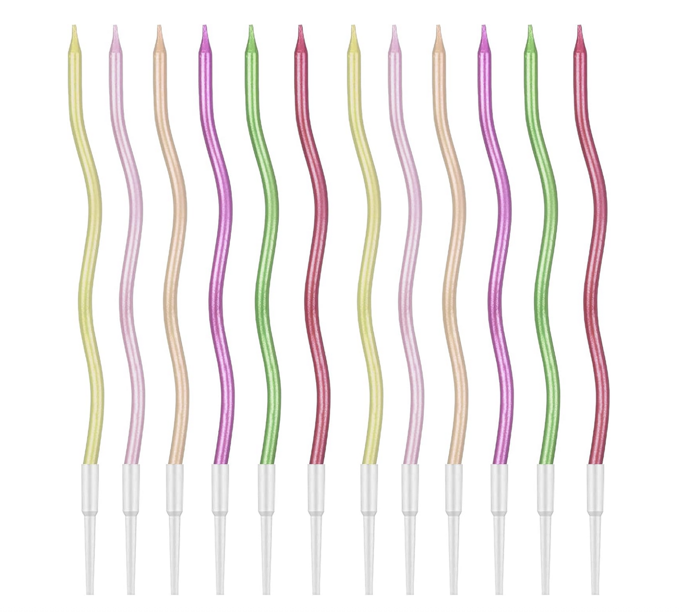 Луксозни Свещички за торта микс цветове металик спирала – 12 броя