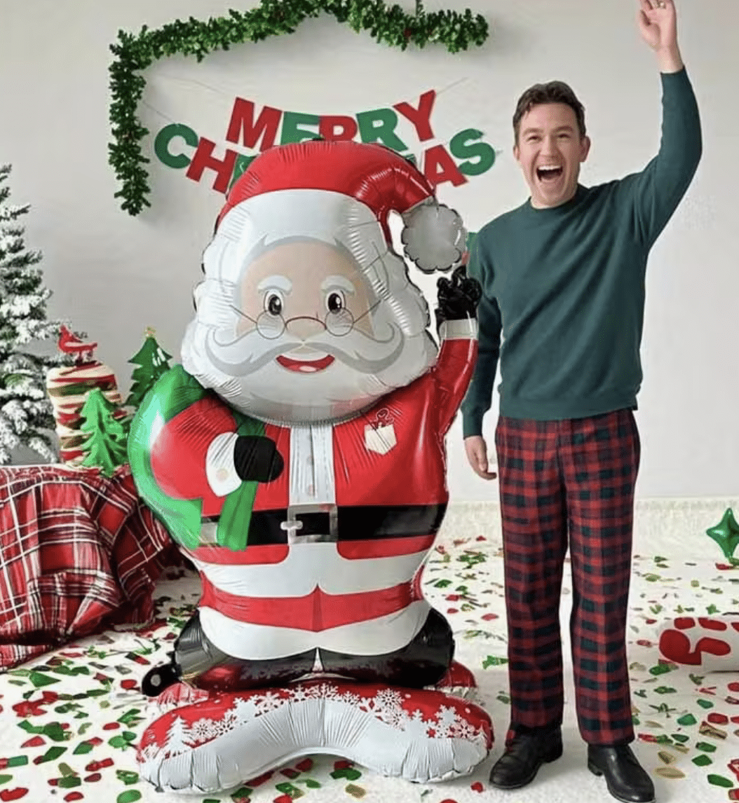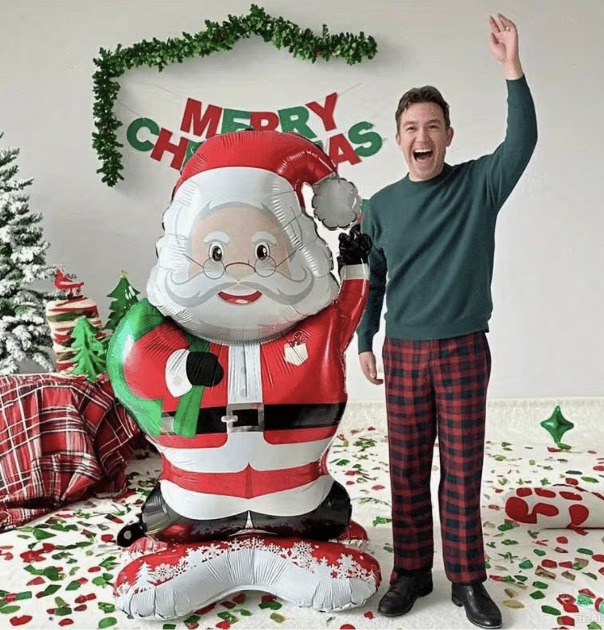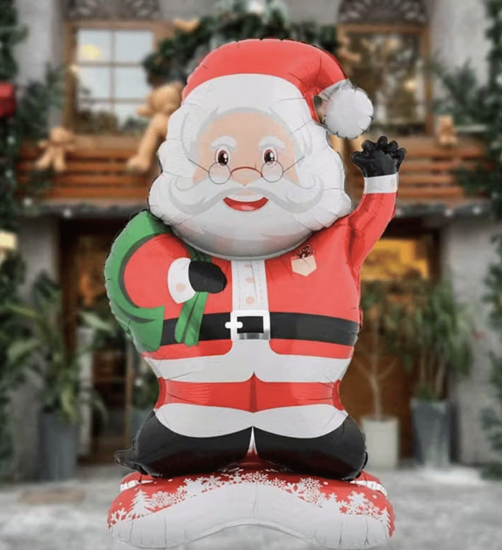 Създайте празнично настроение с тази голяма и забавна надуваема фигура на Дядо Коледа, висока 120 см. Моделът е изработен от лъскав фолиев материал и е перфектен за коледна украса у дома, в офиса, на парти или във витрина.