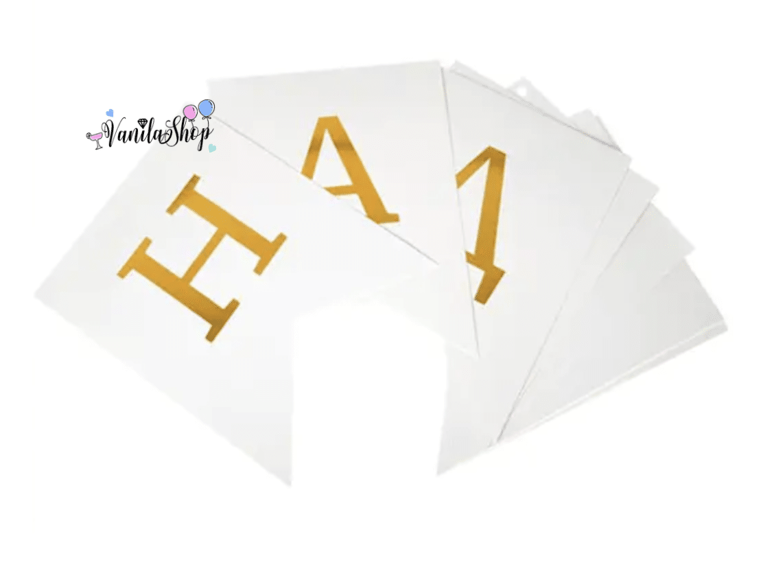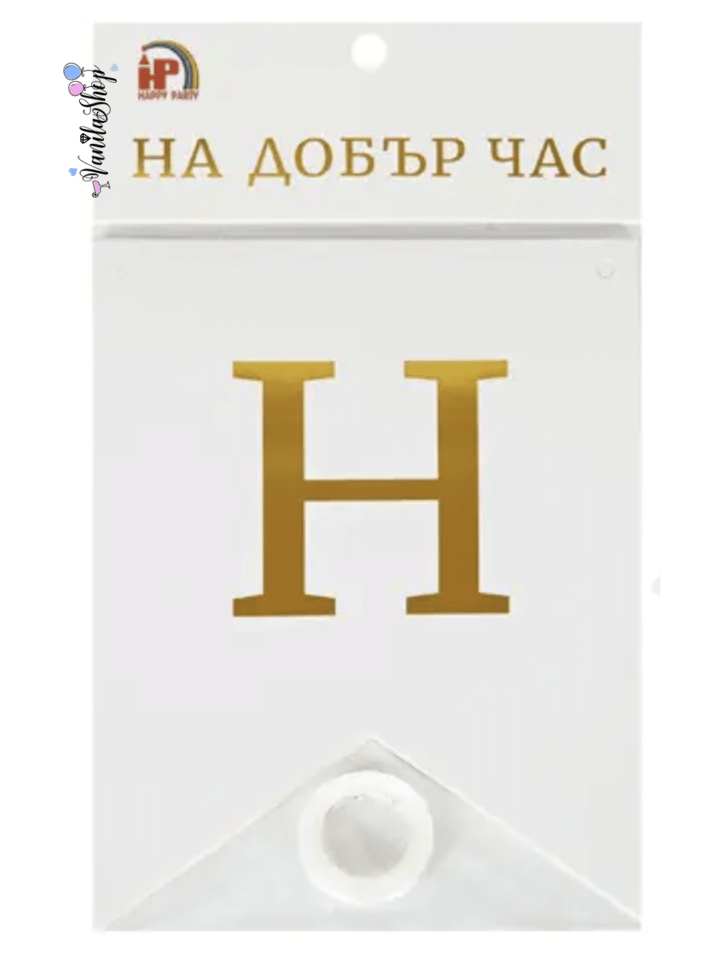 Стилен парти банер с надпис „На добър час“, подходящ за изпращане, дипломиране, завършване на училище, университет или ново начало. Класическият бяло-златен дизайн придава елегантен и празничен вид на всяко тържество. Банерът е съставен от отделни флагчета с букви и се окачва лесно на стена, врата, маса или фотокът.