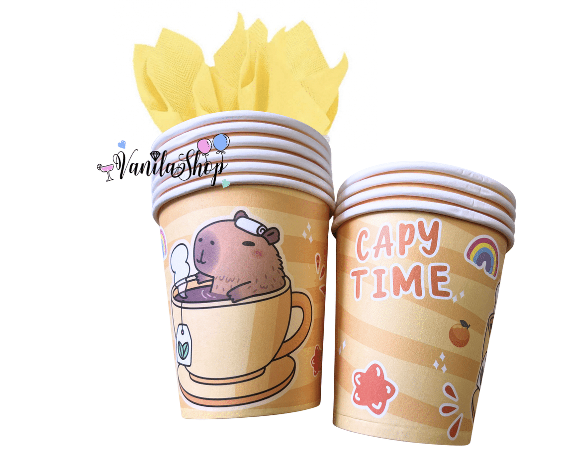 Очарователни еднократни чаши с усмихната капибара в парти настроение – идеалният детайл за завършена и сладка парти маса!