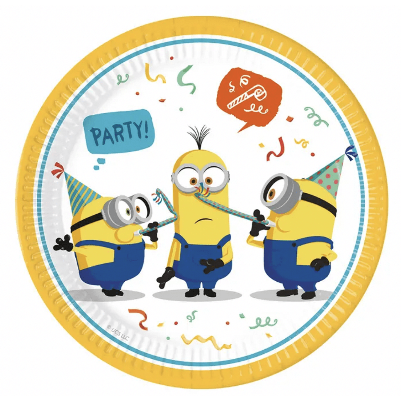 Добавете забавление и настроение на празничната маса с тези парти чинии Миньоните (Minions)! Комплектът съдържа 8 броя картонени чинии с диаметър 23 см, подходящи за сервиране на торта, сладкиши, пица или други вкусни хапки. С веселия си дизайн с любимите жълти герои, тези чинии са идеалното допълнение за рожден ден или тематично детско парти.