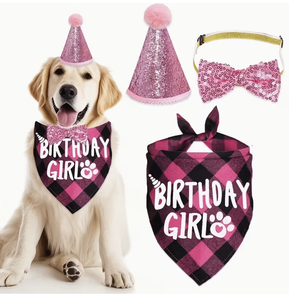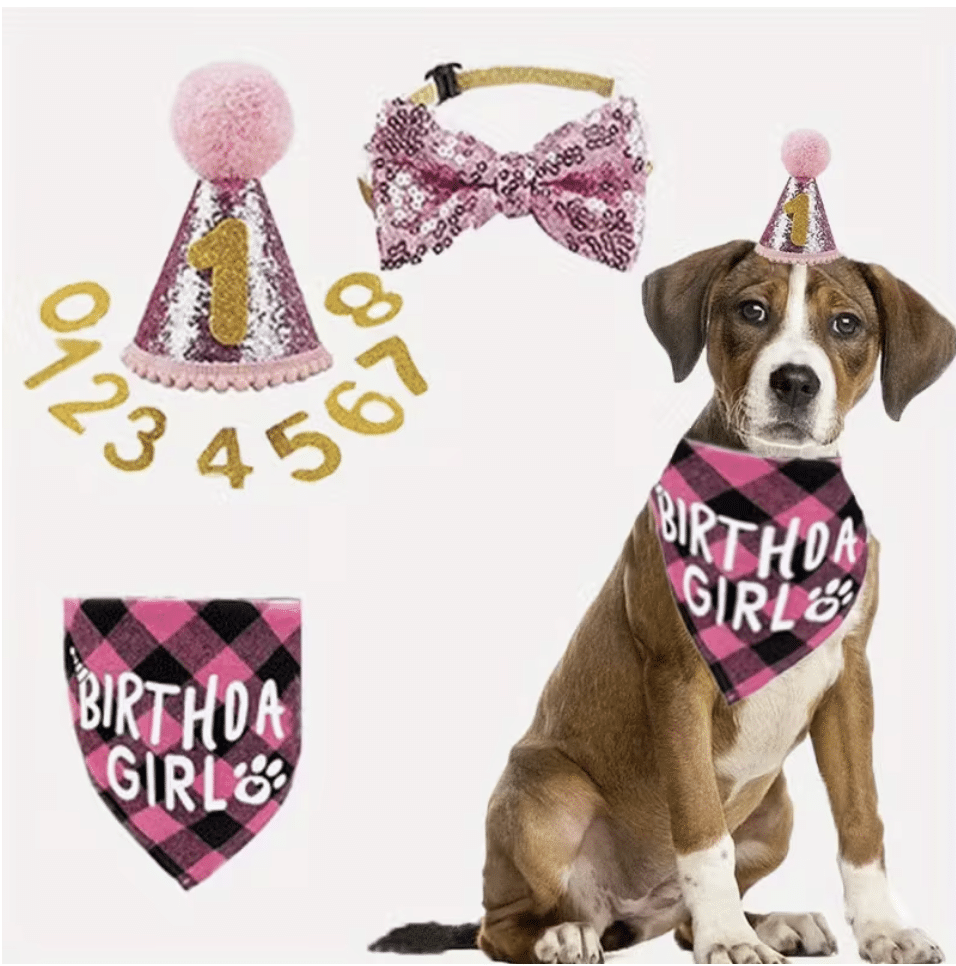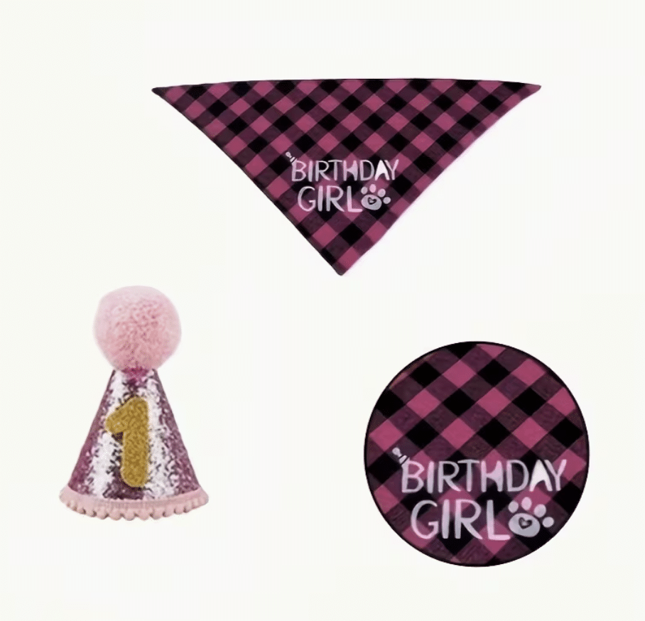 🐾 Розов парти комплект за рожден ден „Birthday Girl“ за домашни любимци