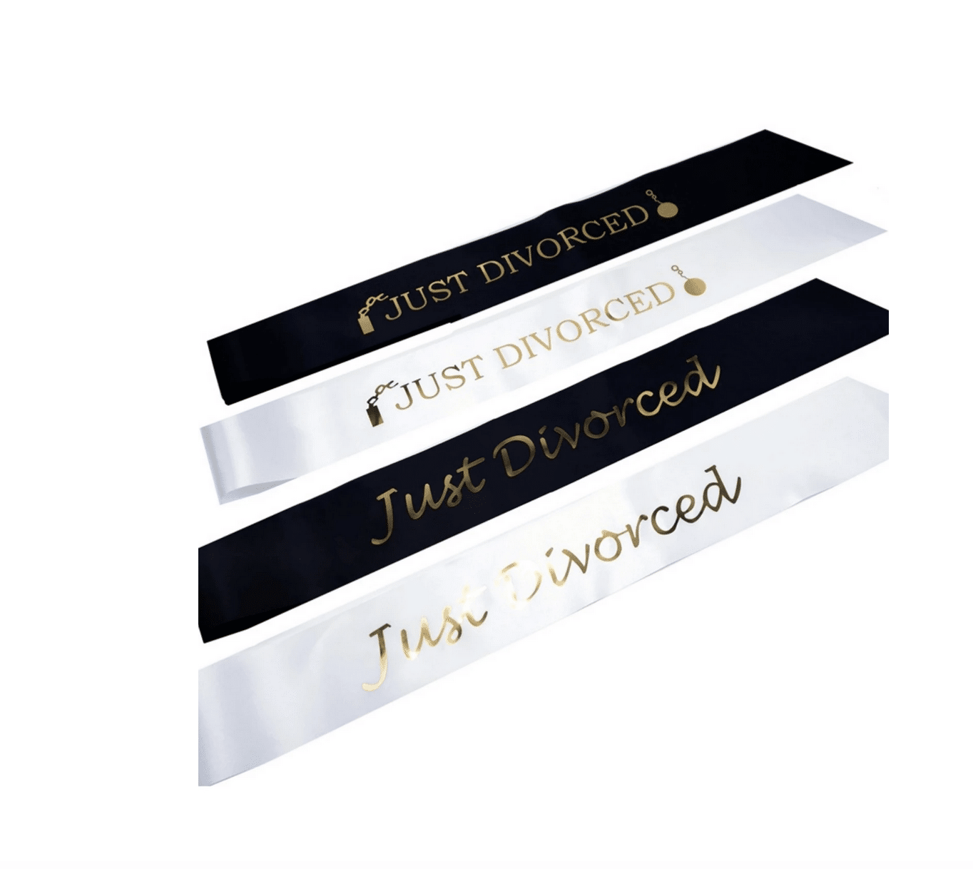 ✨ Надпис: „Just Divorced“ в златист цвят