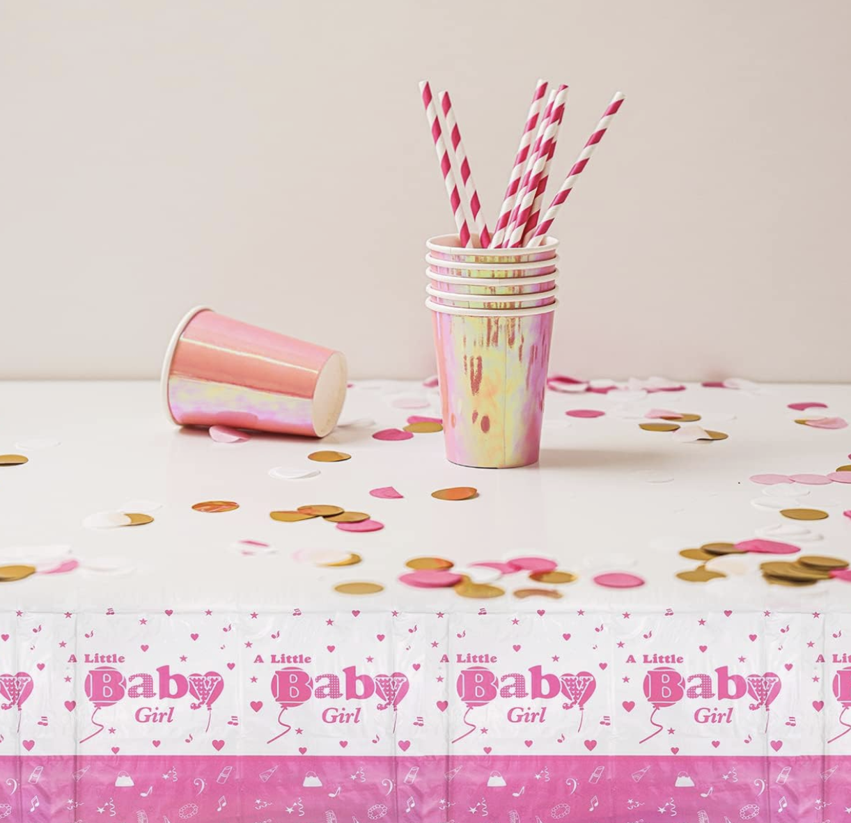 Създайте нежна и празнична атмосфера за специалния ден с тази парти покривка “A Little Baby Girl”. В розова цветова гама с бебешки мотиви, тя е идеален избор за baby shower, gender reveal или за празник по повод посрещането на новородено момиченце. Освен декоративна, покривката предпазва масата и улеснява почистването след събитието.