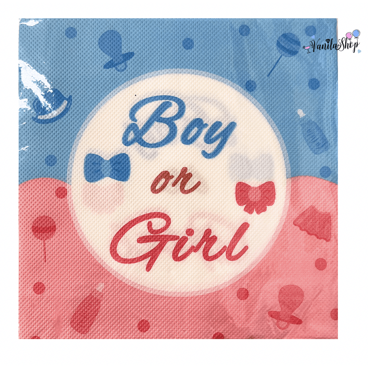 Сладки салфетки в розово и синьо с надпис „Boy or Girl“ с размер 33 х 33 см – 10 броя в пакет.