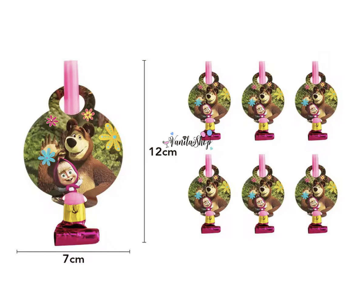 Направете празненството си още по-весело с тези цветни парти свирки с любими герои от “Маша и Мечока”. Перфектни за детски рождени дни и тематични партита.