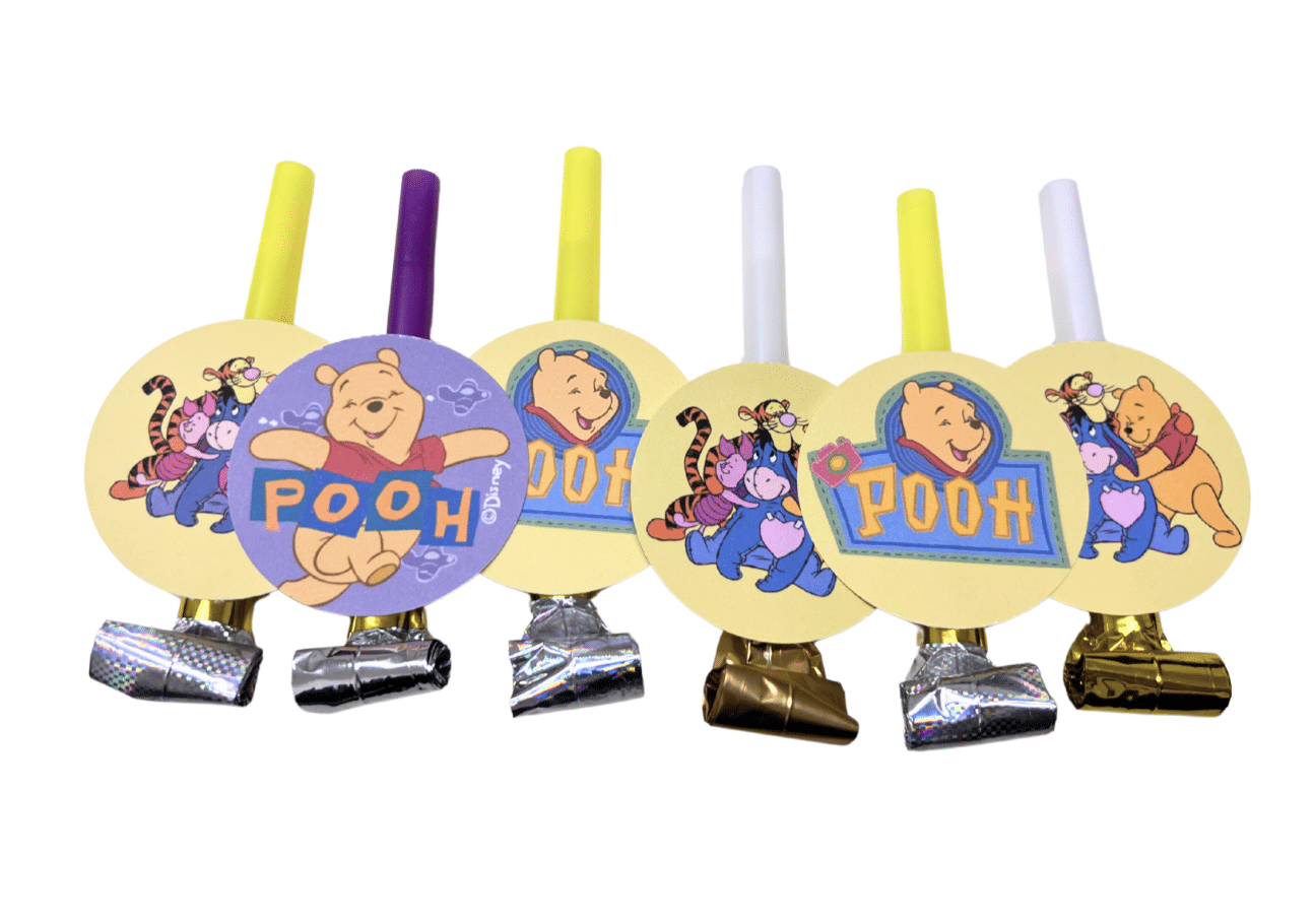 Забавни и цветни парти свирки с изображения на любимите герои от Мечо Пух! Идеален избор за детски рождени дни или тематични събития, тези свирки добавят радост и празнично настроение.