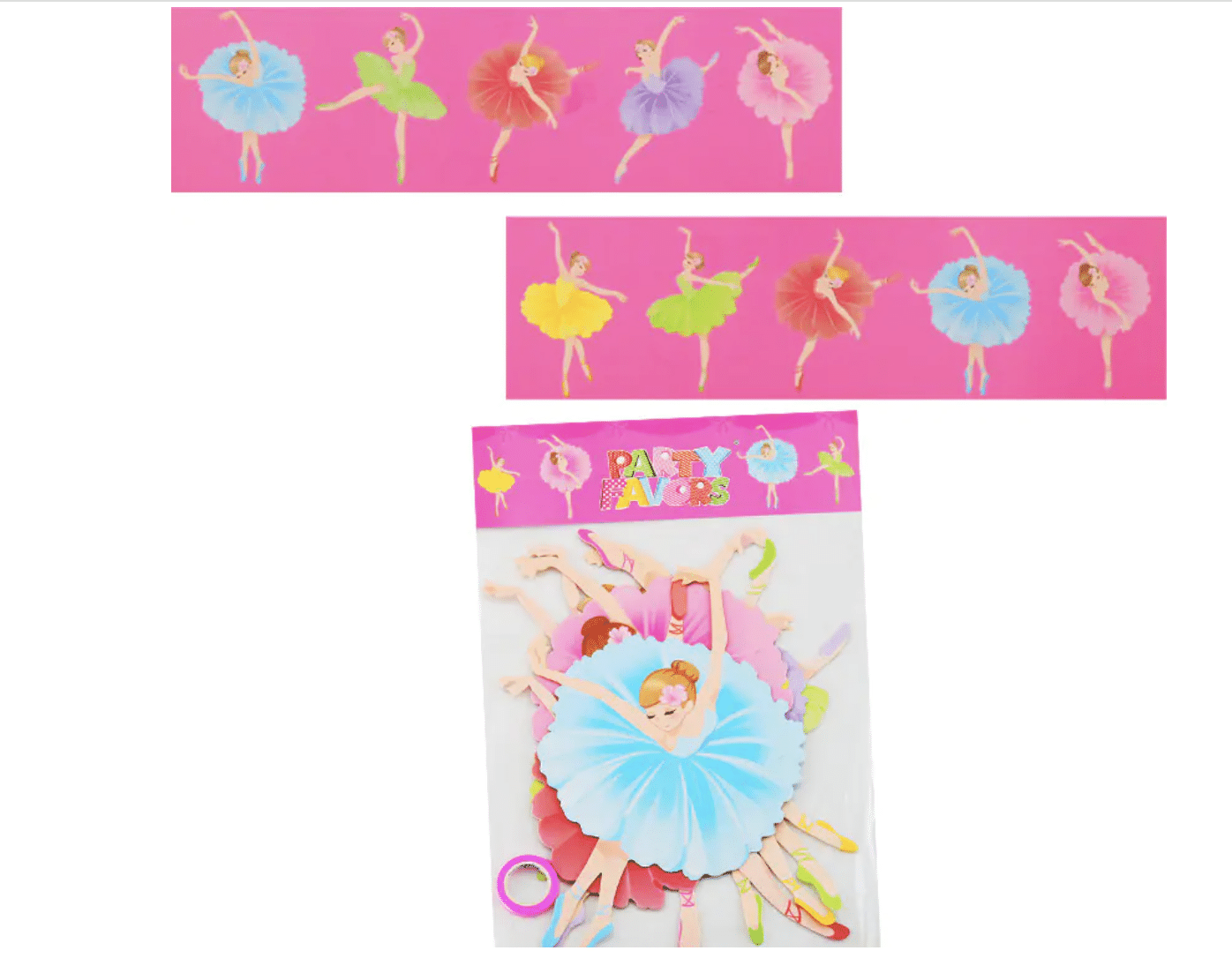 Нежна и цветна парти украса „Балерини“, която ще внесе приказна атмосфера и елегантност на всяко детско парти. С красиви балерини в различни цветове и танцови пози, украсата е идеална за рожден ден, балетна тематика или момичешко тържество.