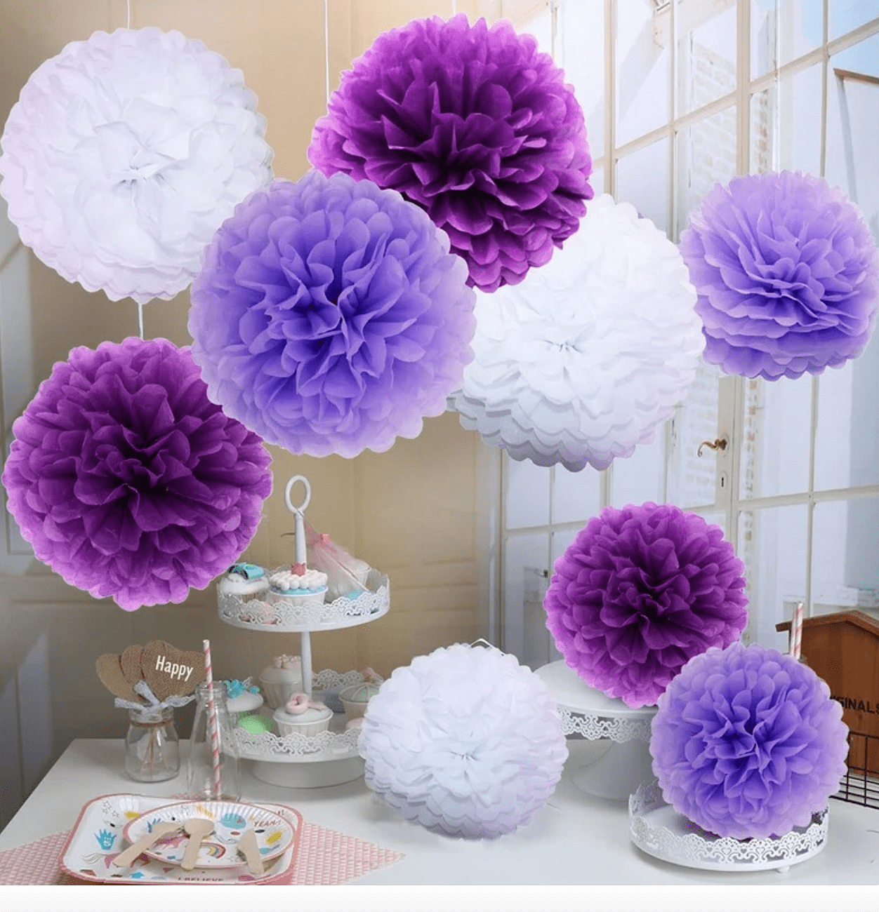 Създайте неповторима атмосфера с елегантна парти украса от ефектна тишу хартия с диаметър 30 см. Лека и въздушна, тази декорация е подходяща за всякакви поводи – сватби, рождени дни, кръщенета, бебешки партита и корпоративни събития.