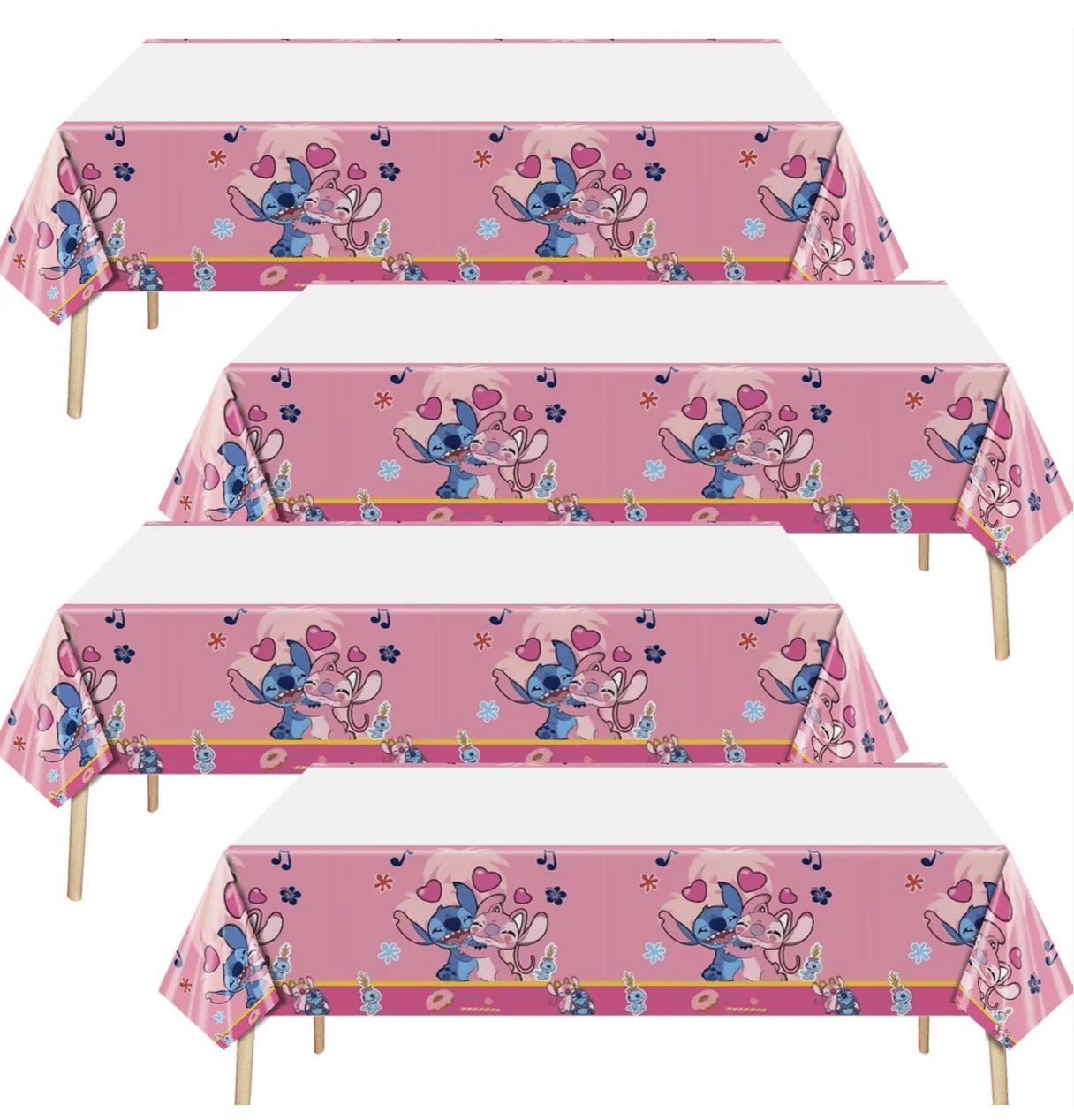 • Тематичен дизайн: Покривката е украсена с изображения на популярните герои Лило и Стич, което я прави идеална за всяко парти на почитателите на анимацията.