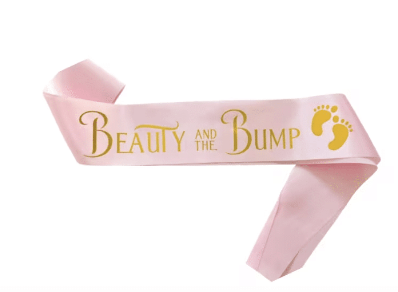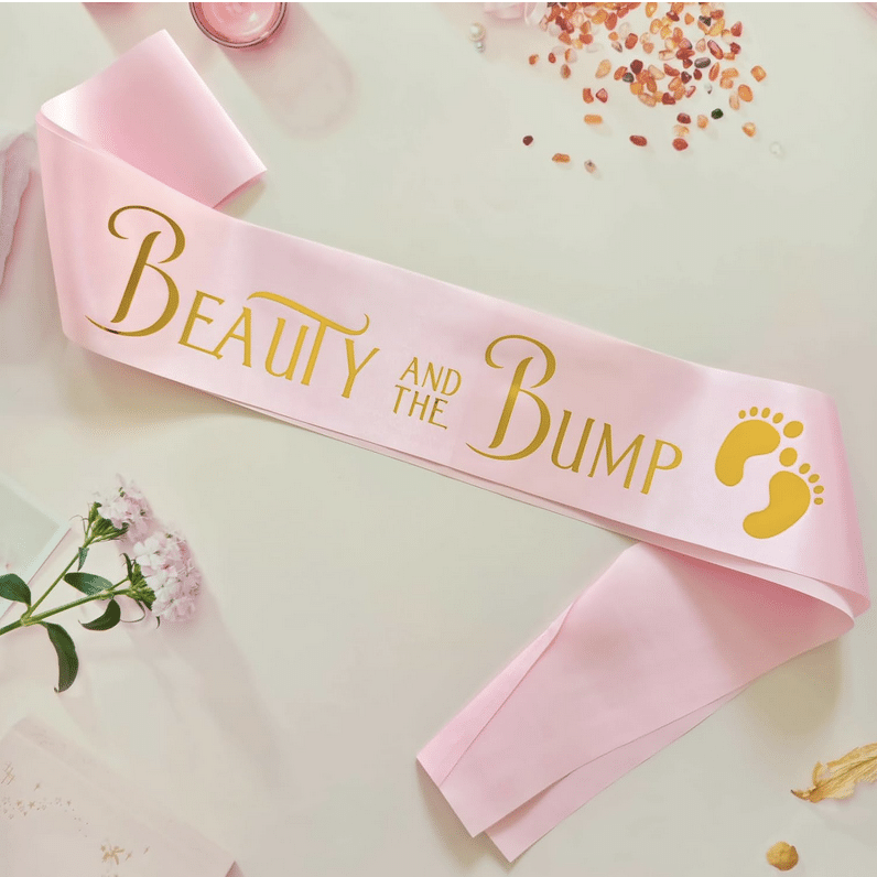 Отпразнувайте очакването на вашето малко съкровище със стил! Тази очарователна лента „Beauty and the Bump“ е идеалният аксесоар за всяка бъдеща майка, която иска да добави нежност и празнично настроение към своя специален ден. ✨🤱