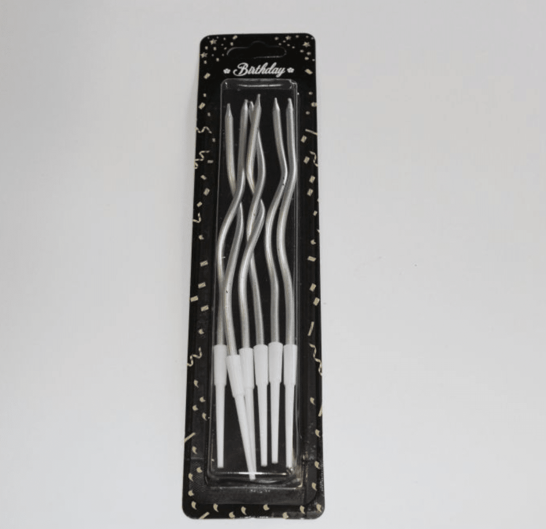 Парти свещички за торта в сребърен цвят с височина 17 см – 6 броя