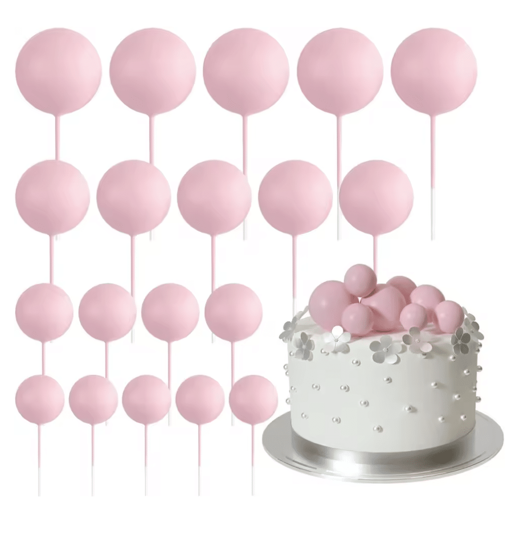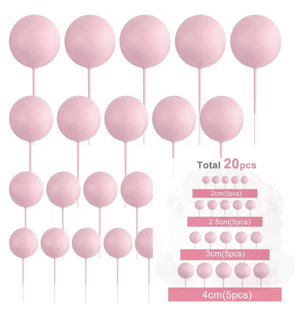 Комплект: 20 броя декоративни топчета, достатъчни за украса на средно голяма торта или множество сладкиши.