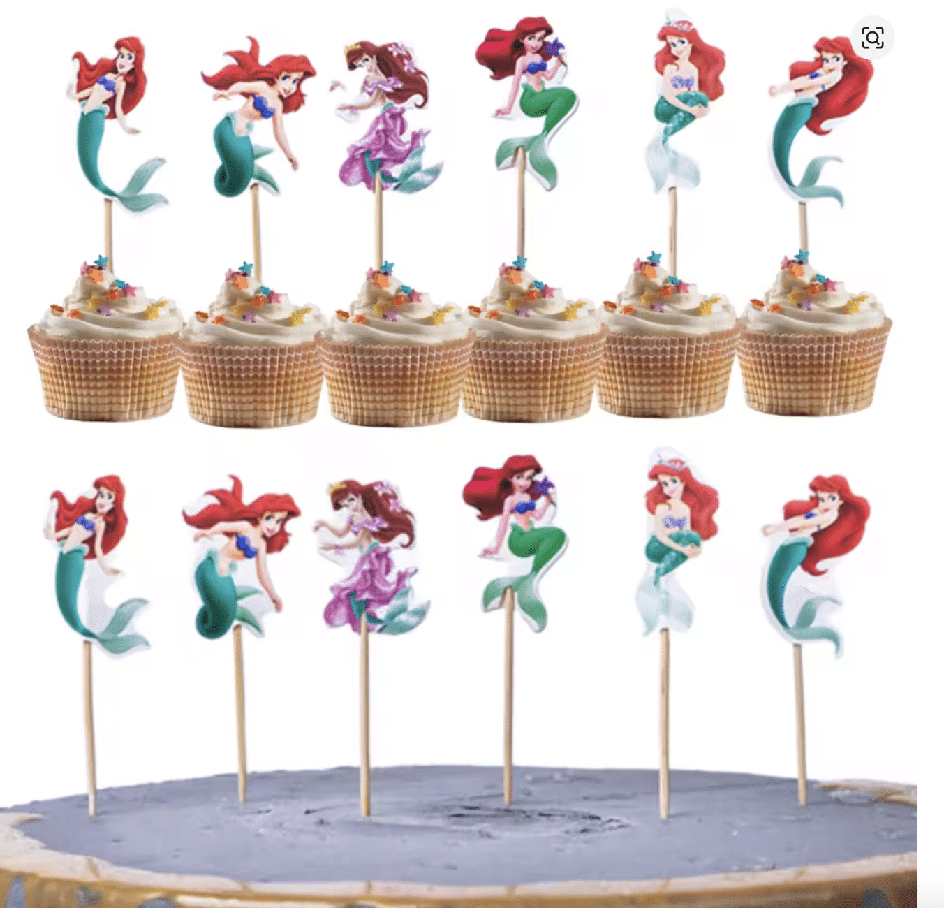 🧜‍♀️ Топери за мъфини „Малката русалка Ариел“ – Сет от 12 броя
