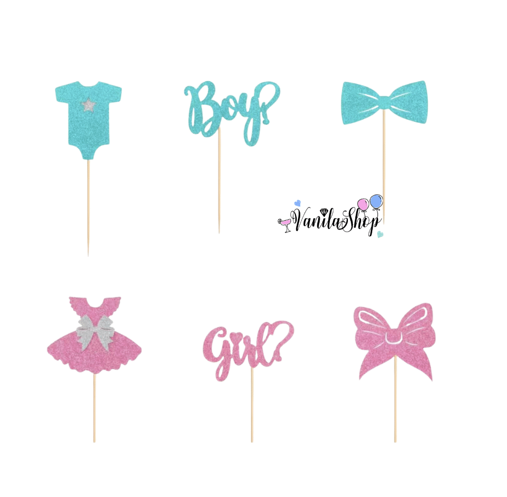 Ефектни и стилни топери за Gender Reveal парти, перфектни за украса на мъфини, кексчета, торти и сладка маса при разкриване пола на бебето ✨