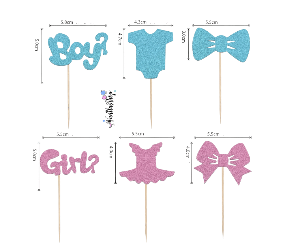 Ефектни и стилни топери за Gender Reveal парти, перфектни за украса на мъфини, кексчета, торти и сладка маса при разкриване пола на бебето ✨