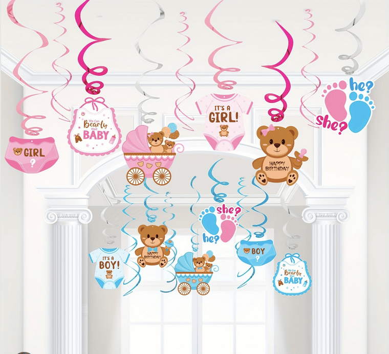 Създайте нежна и празнична атмосфера за baby shower, погача или посрещане на бебе момченце с тази красива висяща спирална декорация в синя гама. 🌤️✨ Идеална за семейни и приятелски събирания.